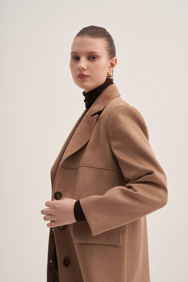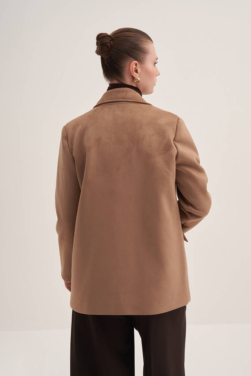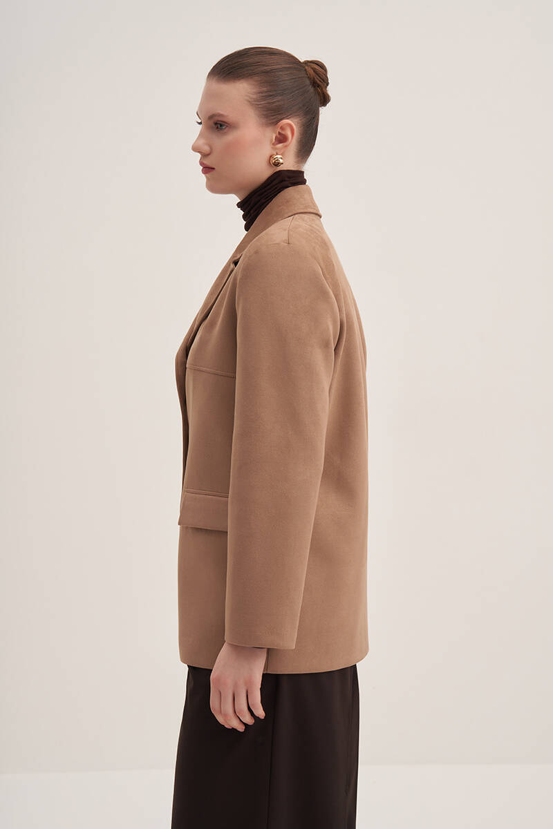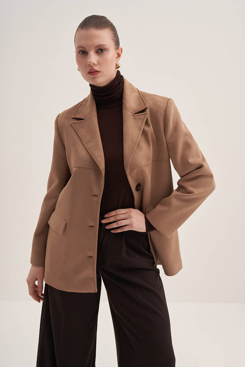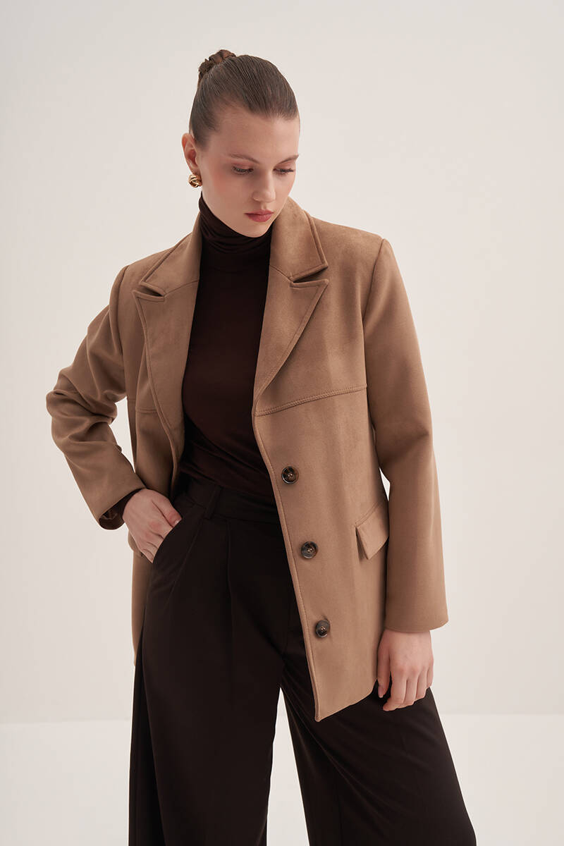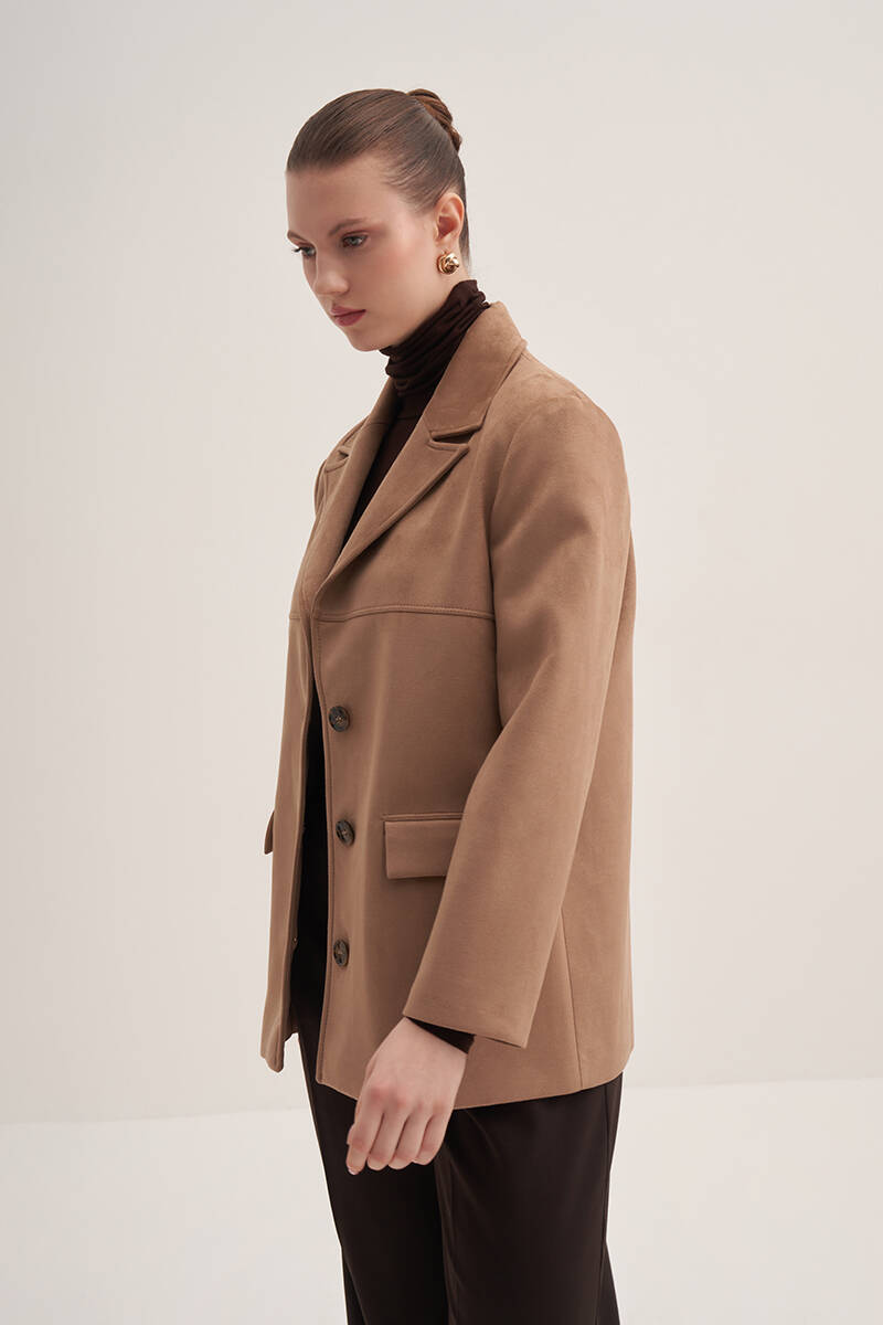 Ekru Sıfır Yaka Metal Düğmeli Şık Ceket
