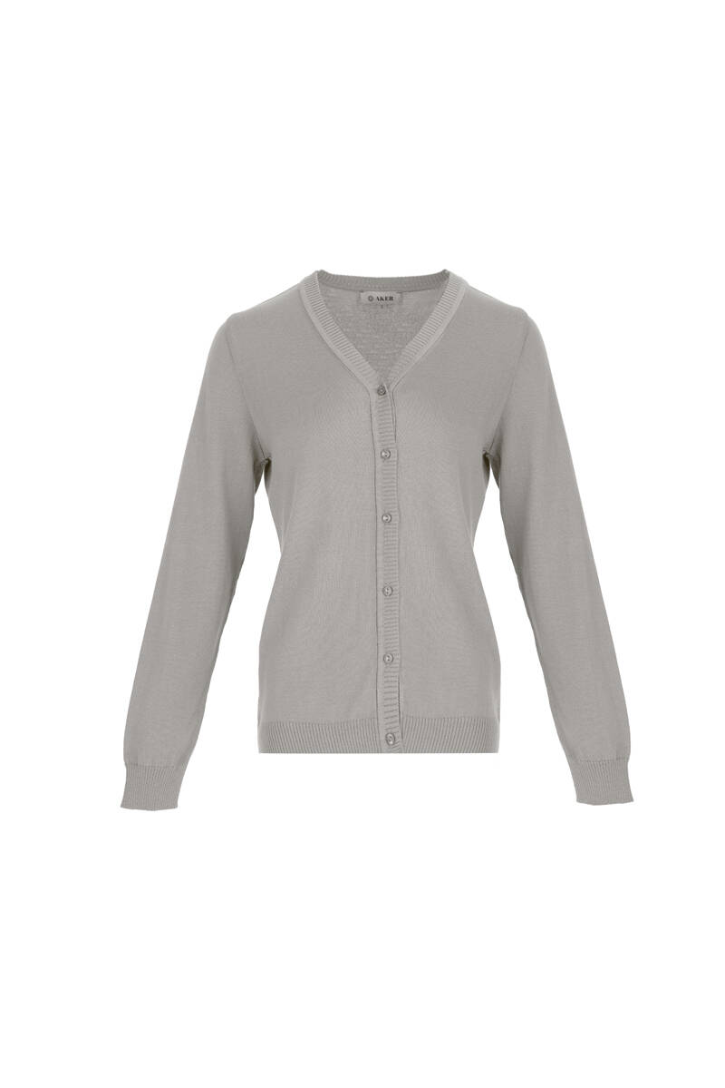 Ekru Cepleri İşleme Detaylı Örme Uzun Hırka