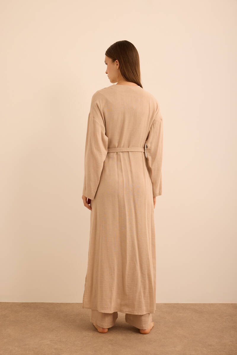 Ekru Seyyar Kemerli Detaylı Tulum