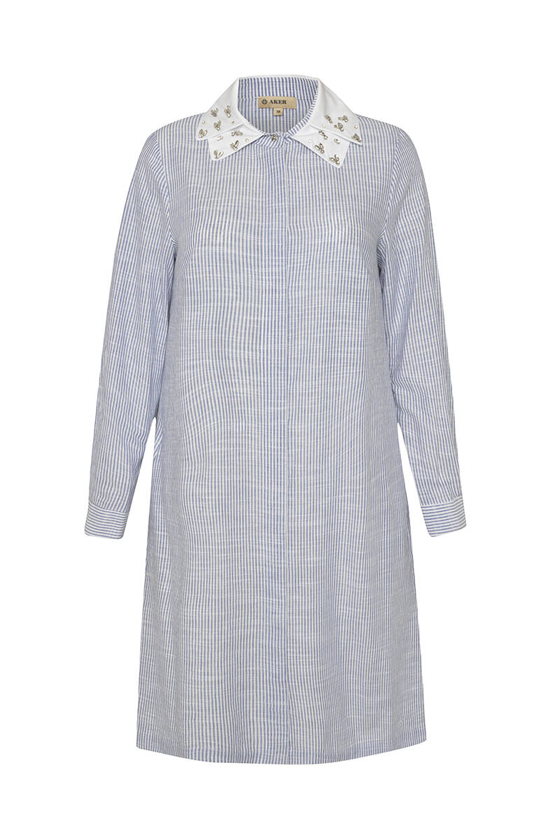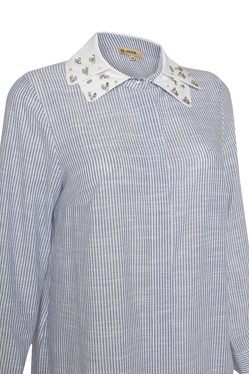 Mint Rahat Kesim İşleme Detaylı Tunik