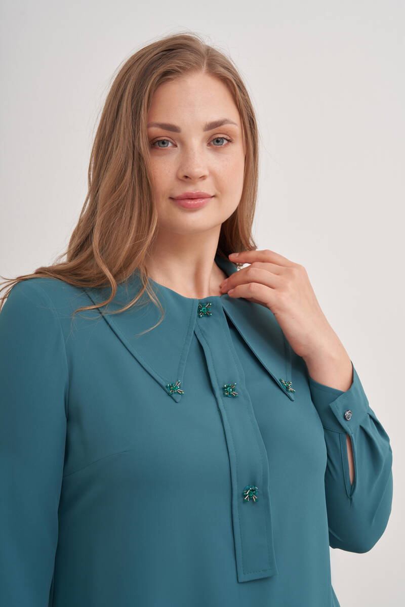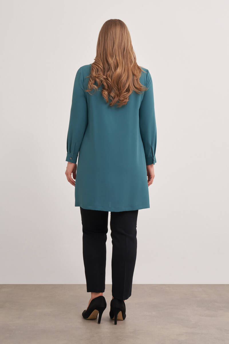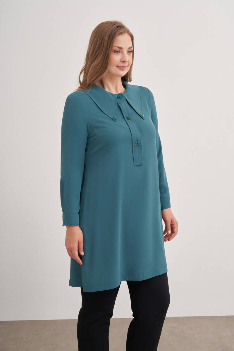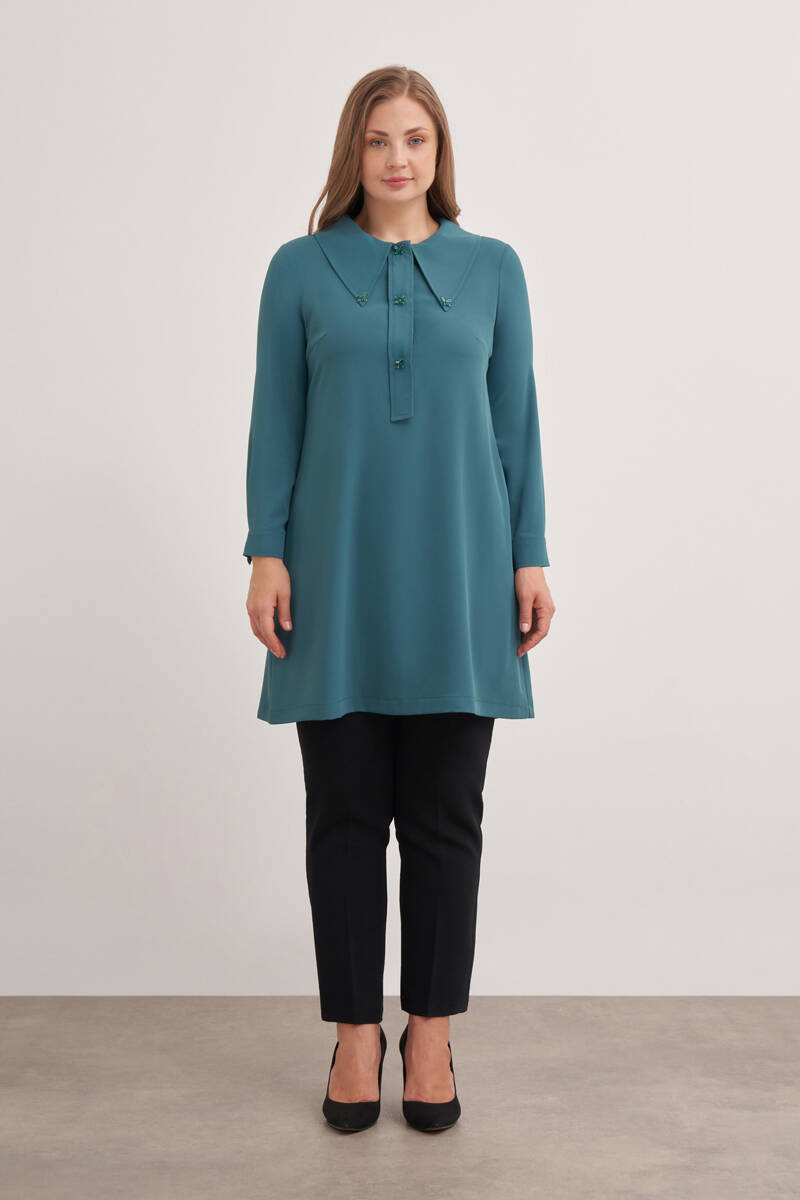 Yeşil Kemeri İşlemeli Dökümlü Tunik