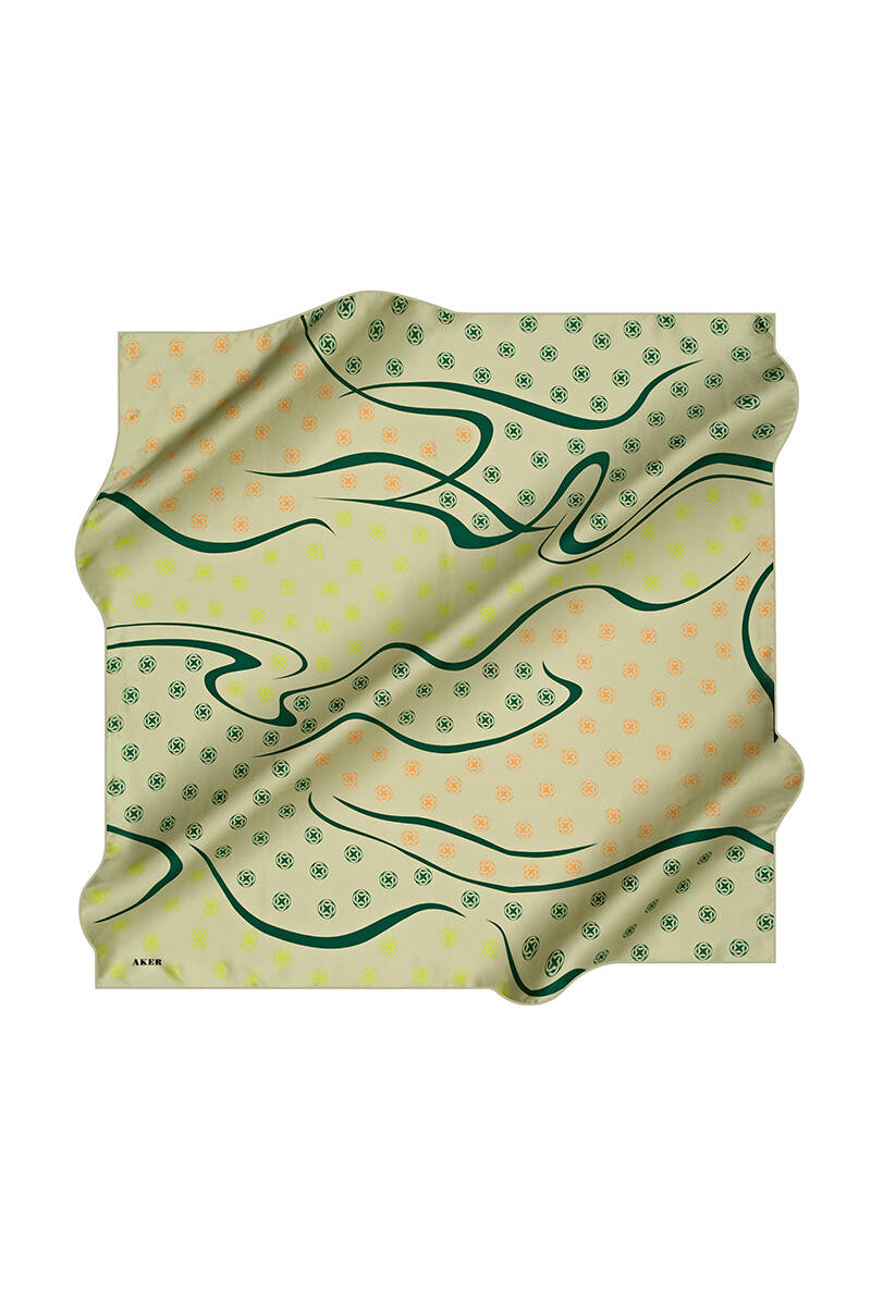 Logo Desenli 90X90 İpek Krep Saten Eşarp