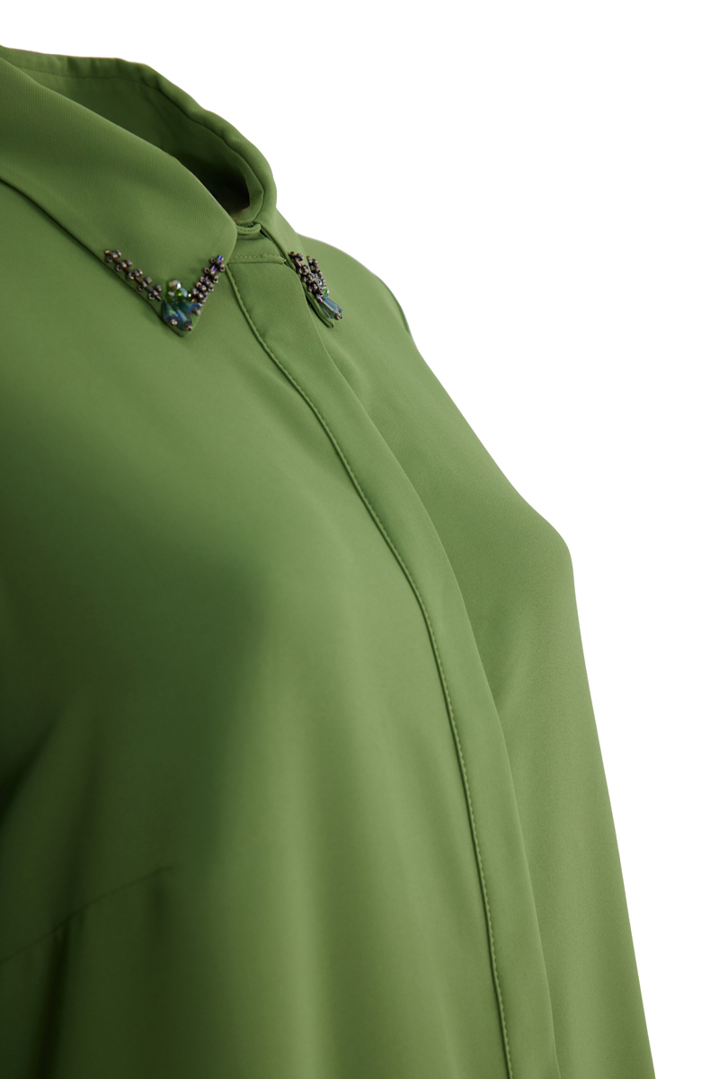 İndigo Dikiş Detaylı Hakim Yaka Tunik
