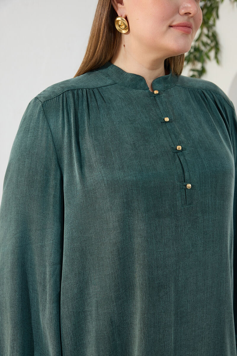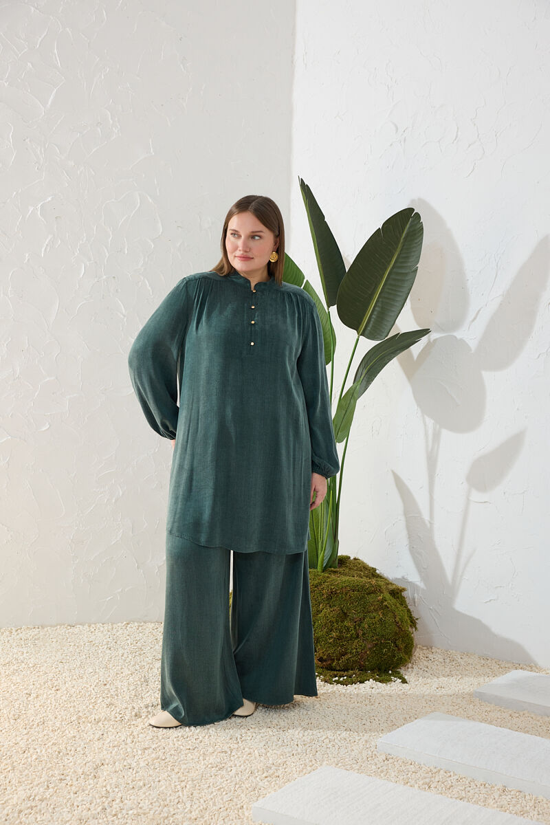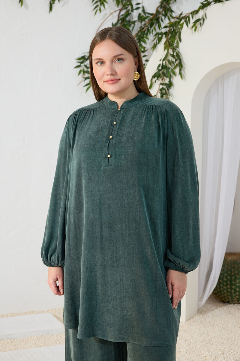 Yeşil Kemeri İşlemeli Dökümlü Tunik