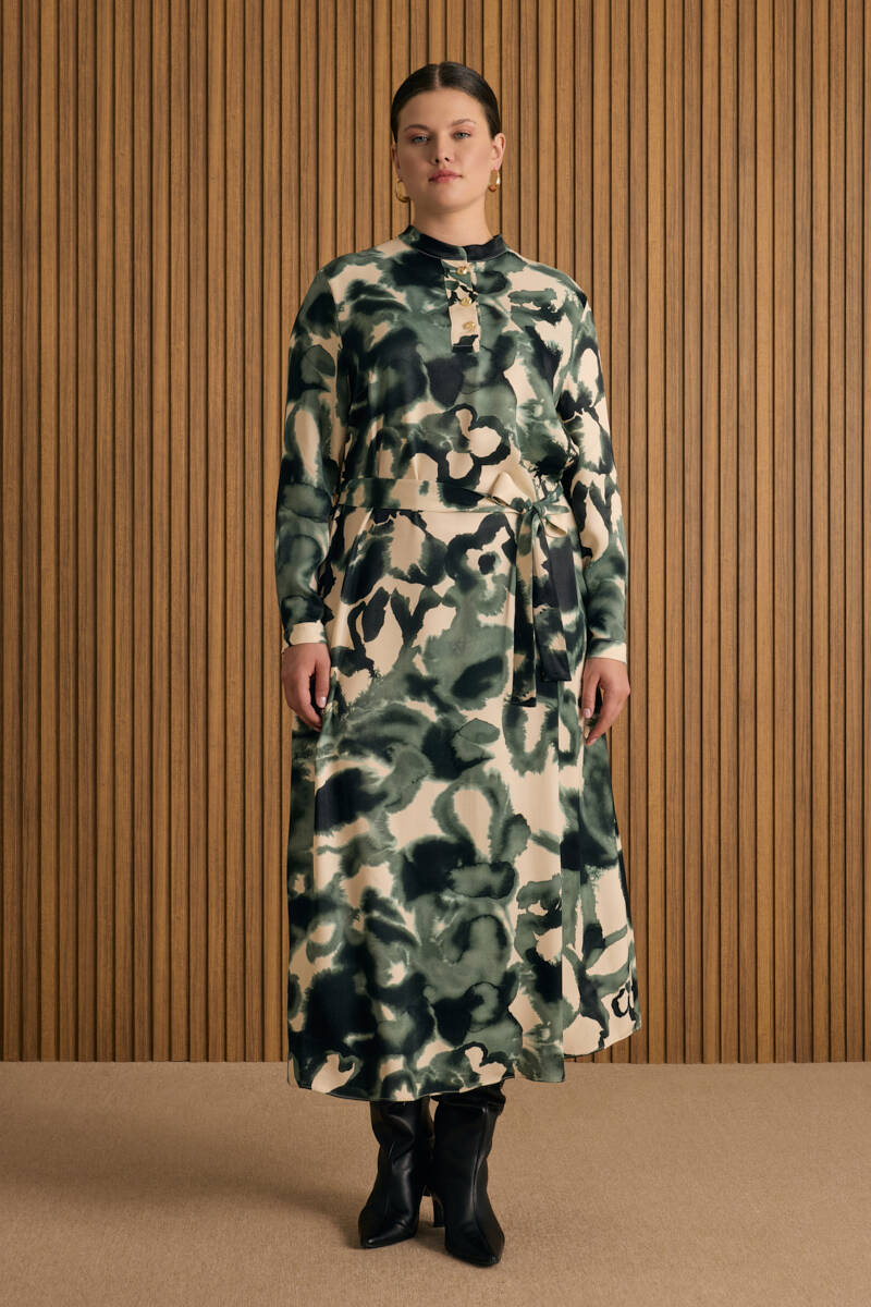 Ekru Desenli Elbise