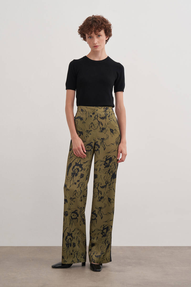 Yeşil Desenli Kemerli Pantolon