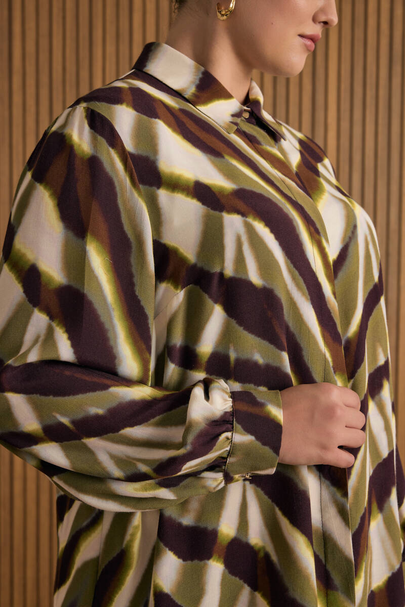 Yeşil Jakar Desenli Viscon Kolsuz Bluz