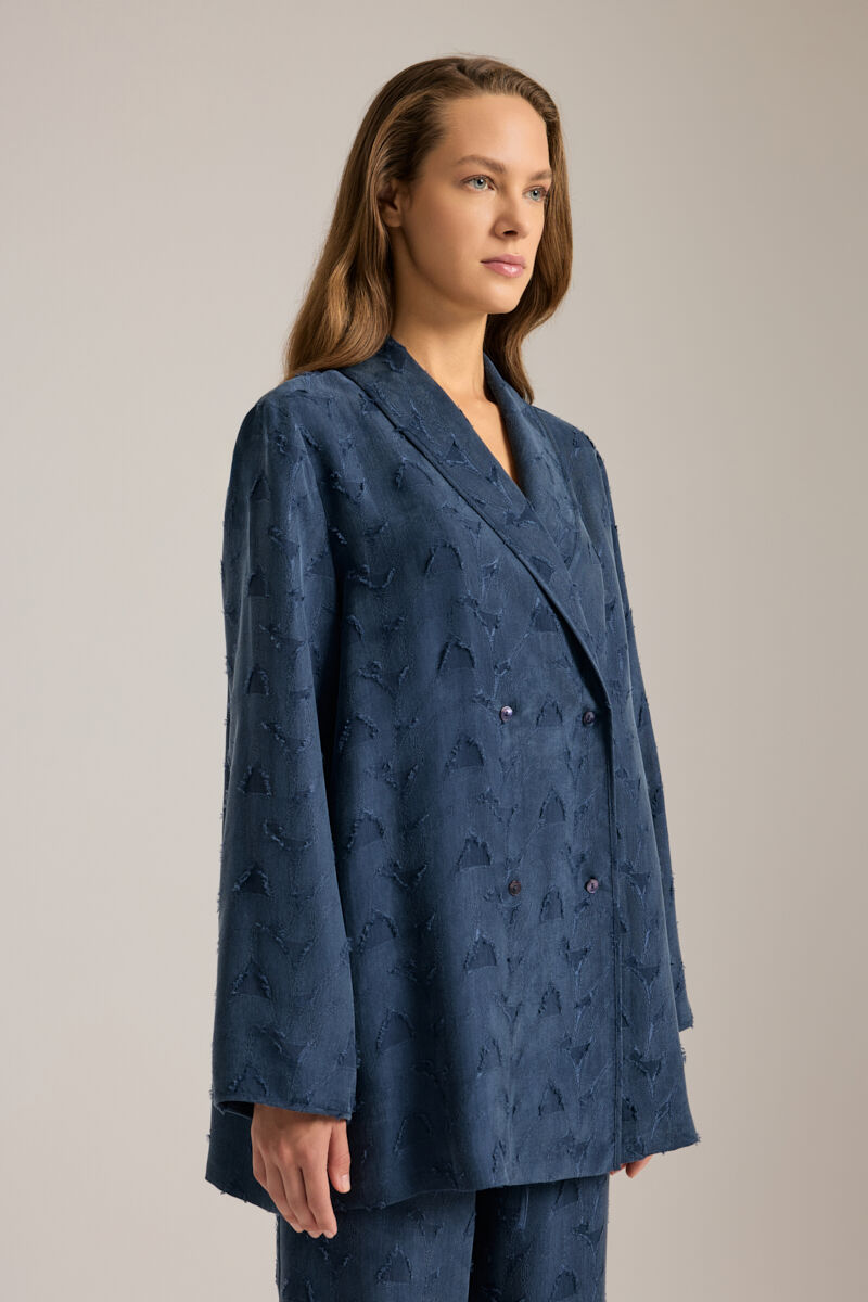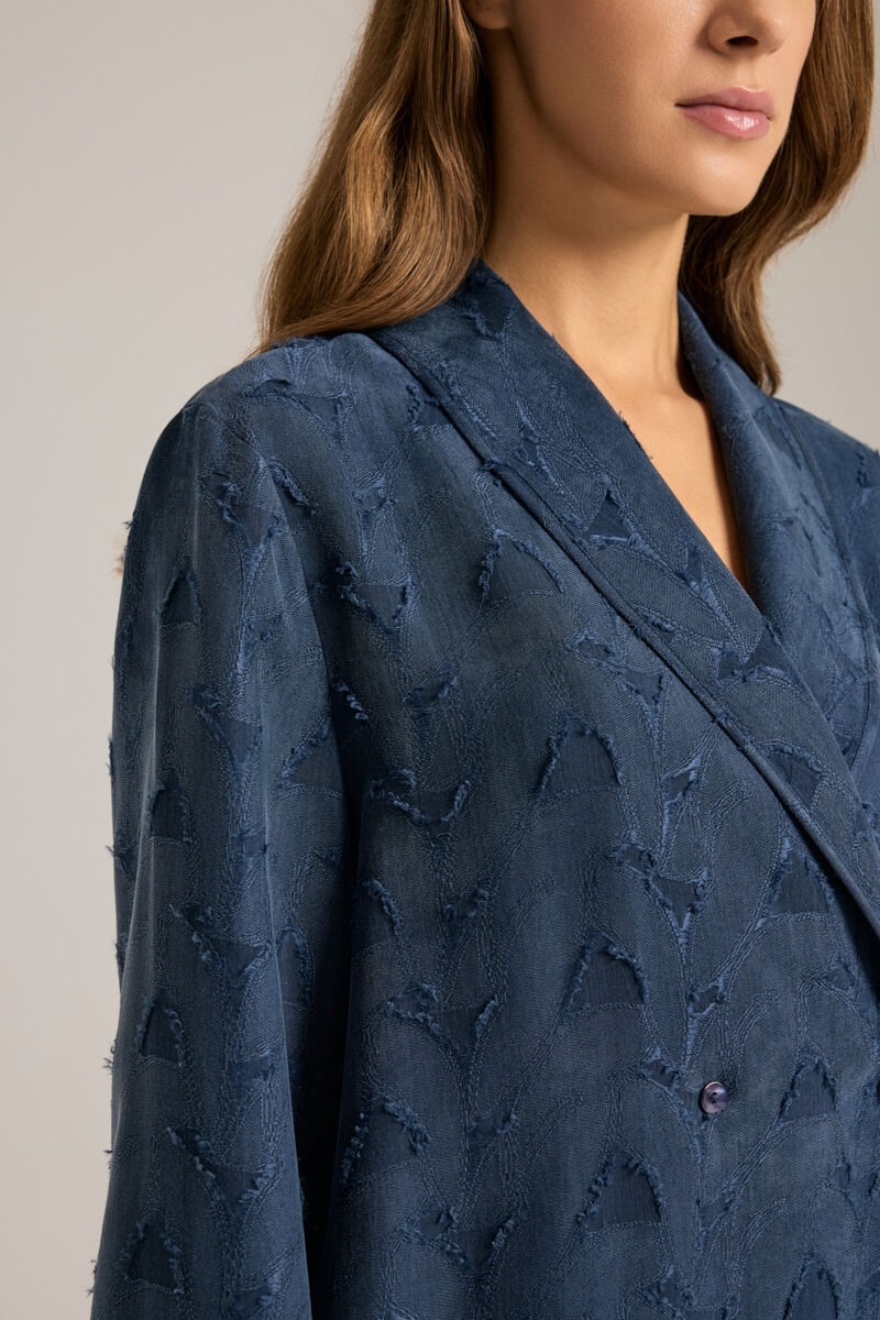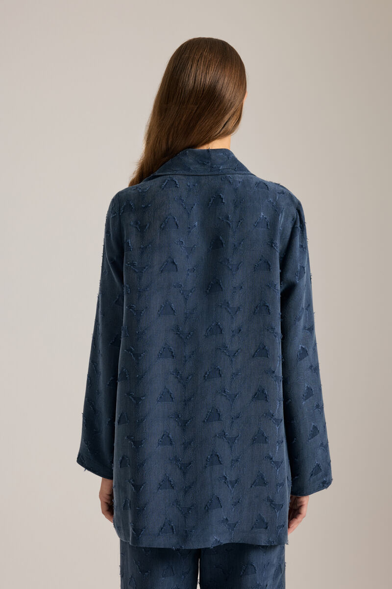 İndigo Çiçek Dokulu Tencel , Askılı Gecelik