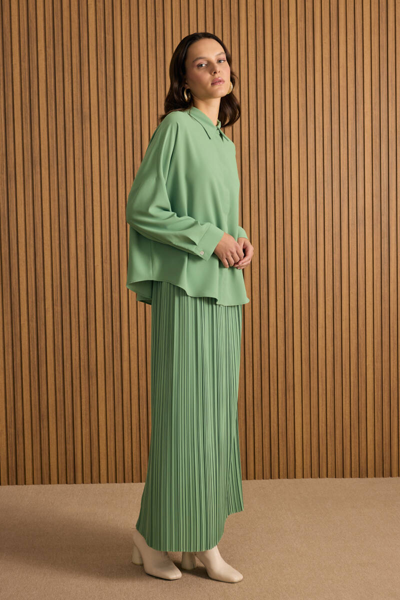 Yeşil Kırışık Piliseli Etek