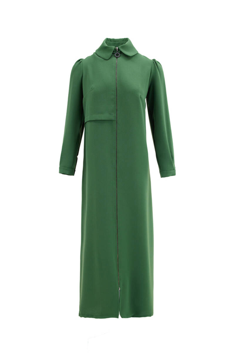 Yeşil Anler Detaylı Fermuarlı Ferace