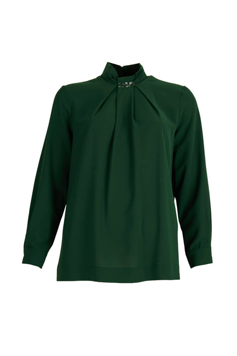 Siyah Yakası Taşlı Bluz