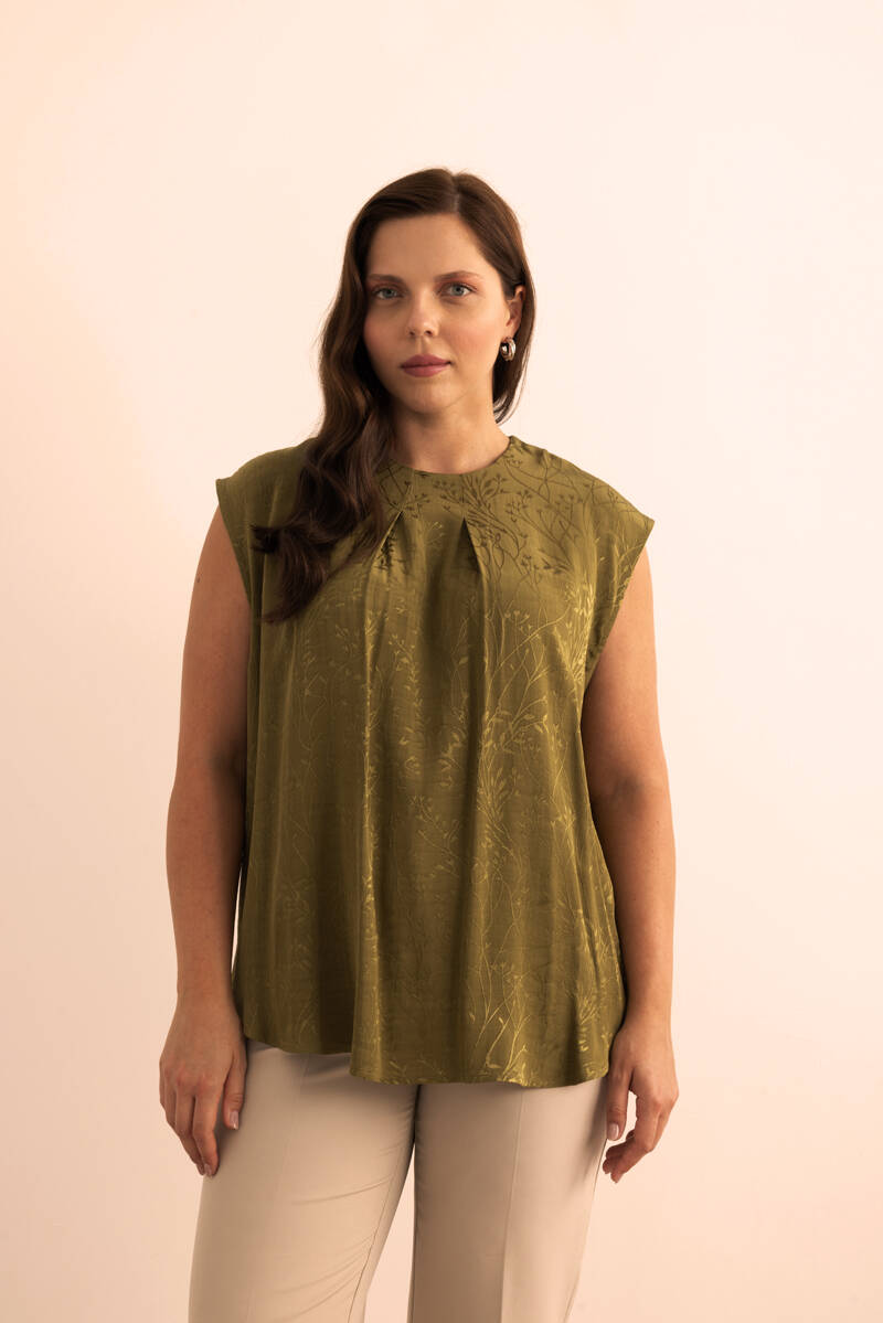 Vizon Bisiklet Yaka Kolsuz Keten Bluz