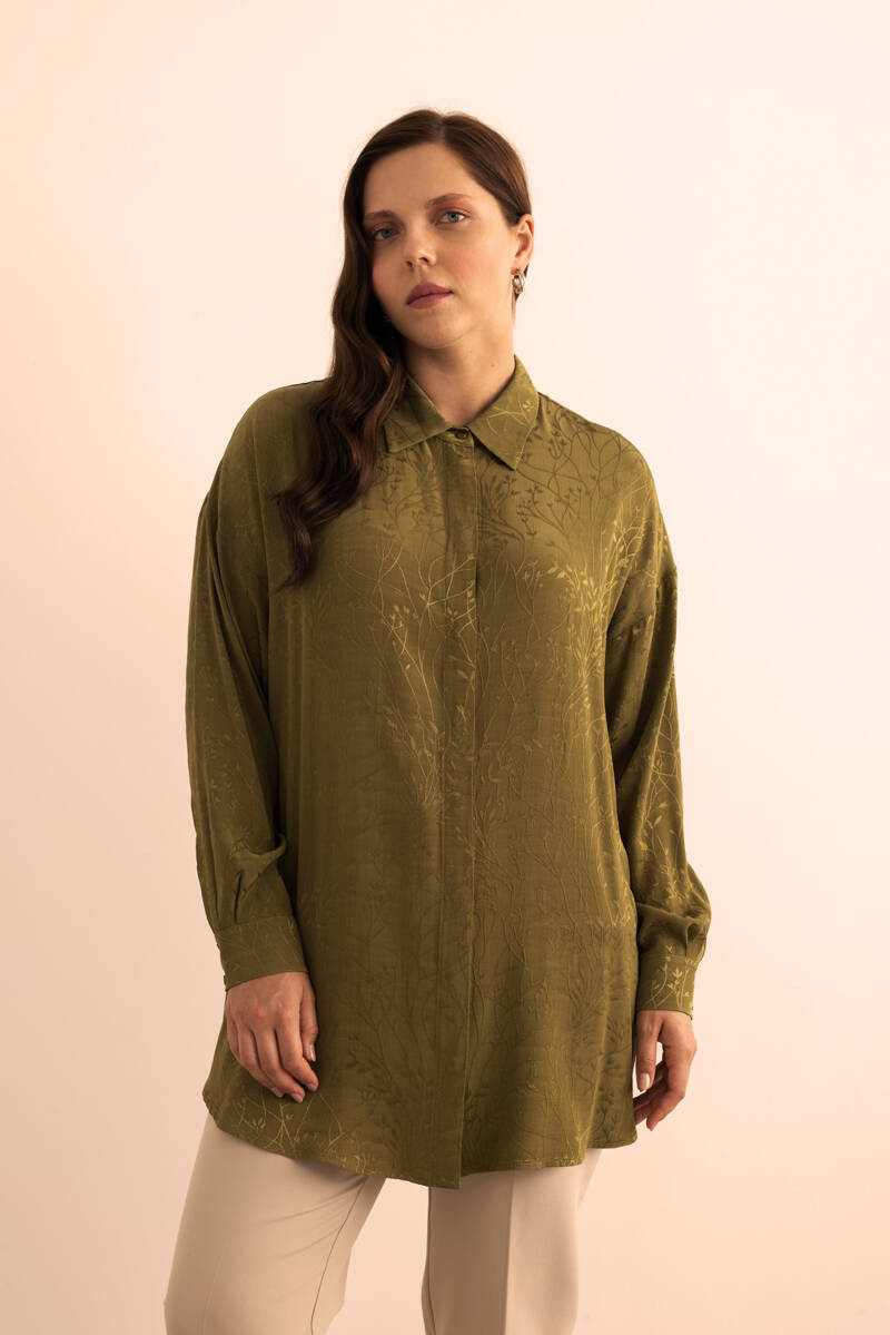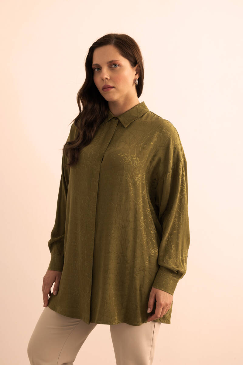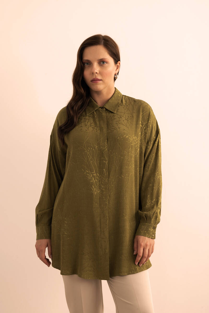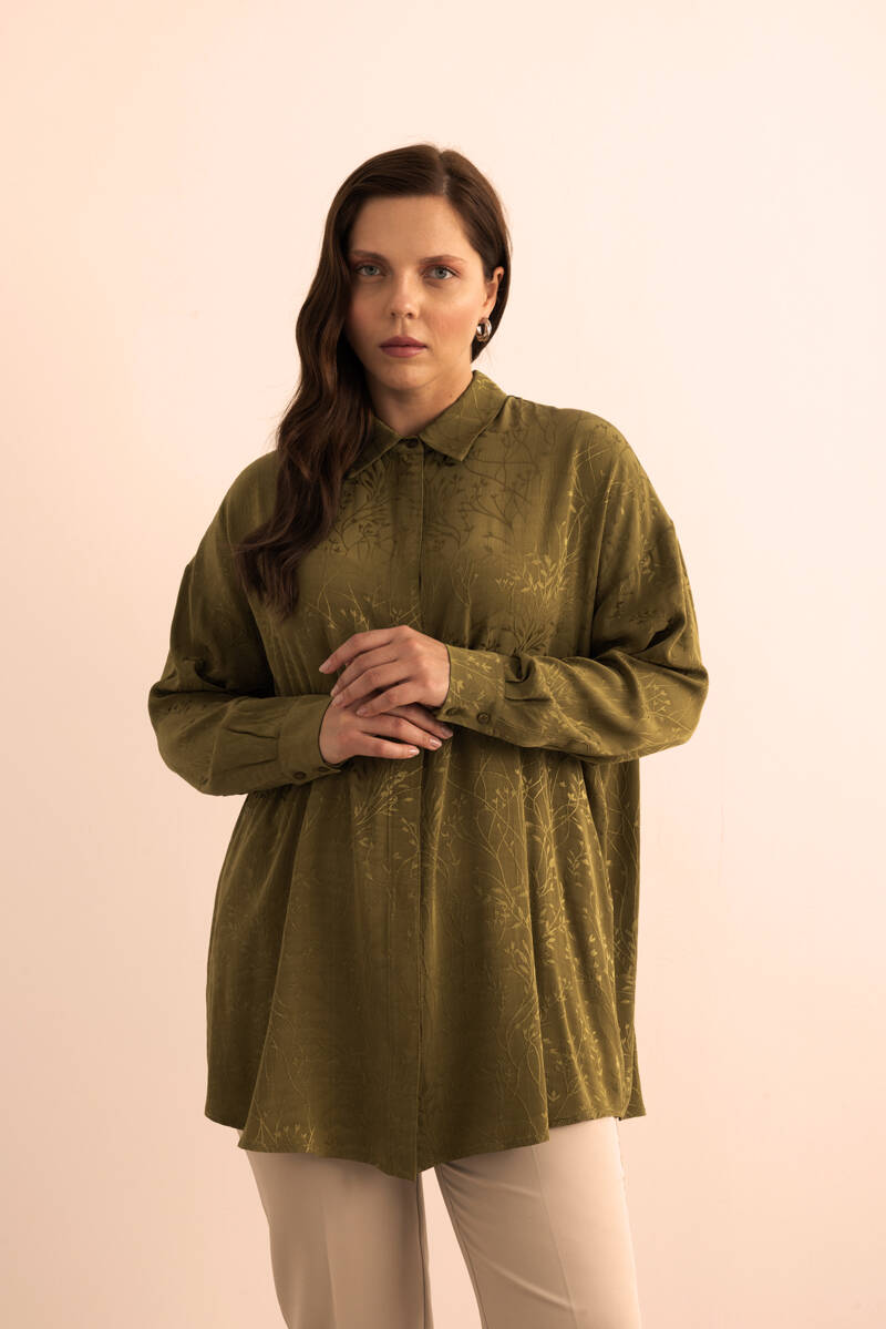 Yeşil Kemeri İşlemeli Dökümlü Tunik