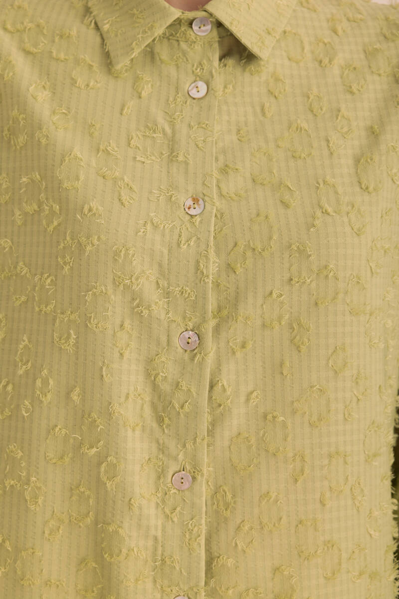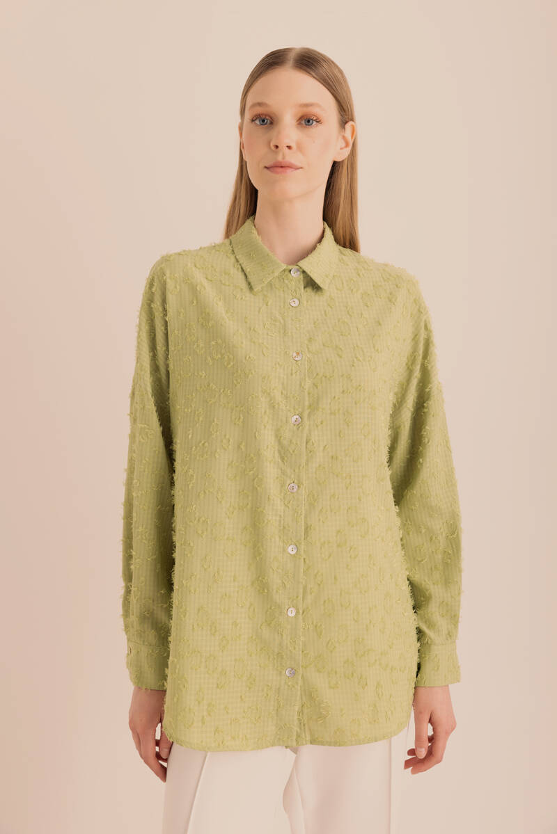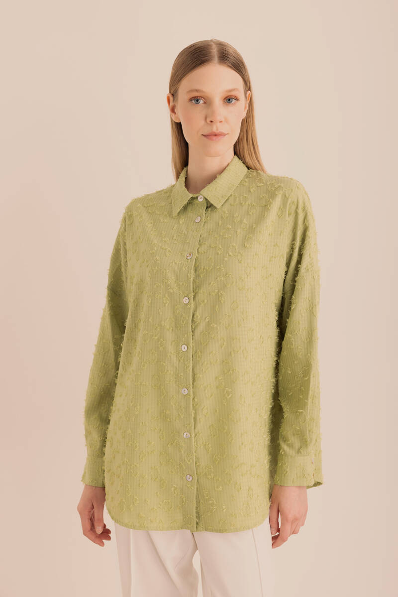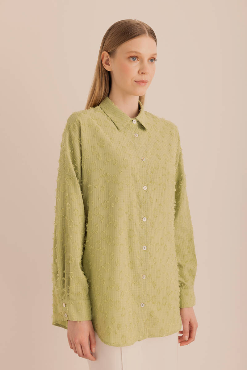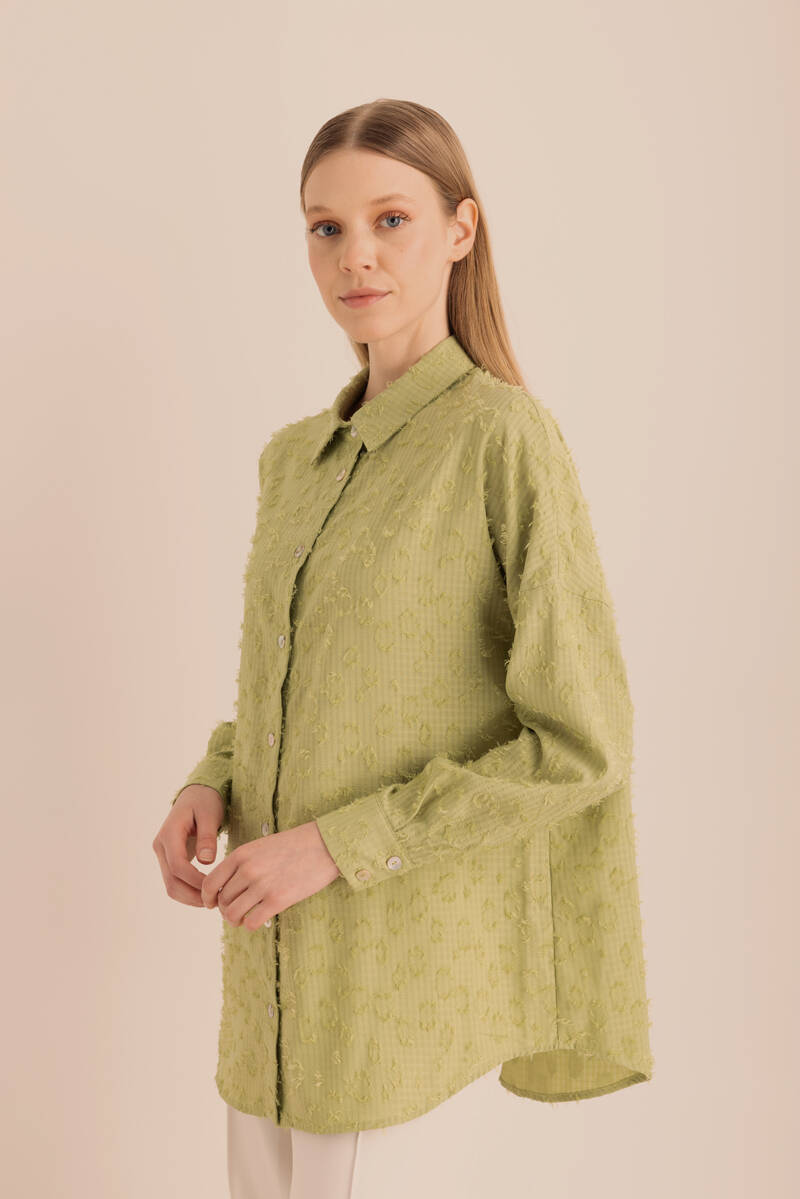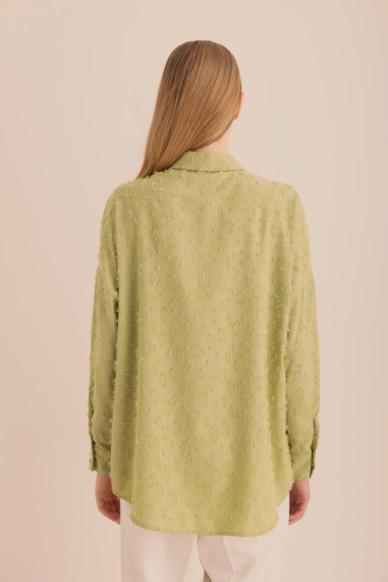 Yeşil Kumaşı Püskül Detaylı Büzgülü Bluz