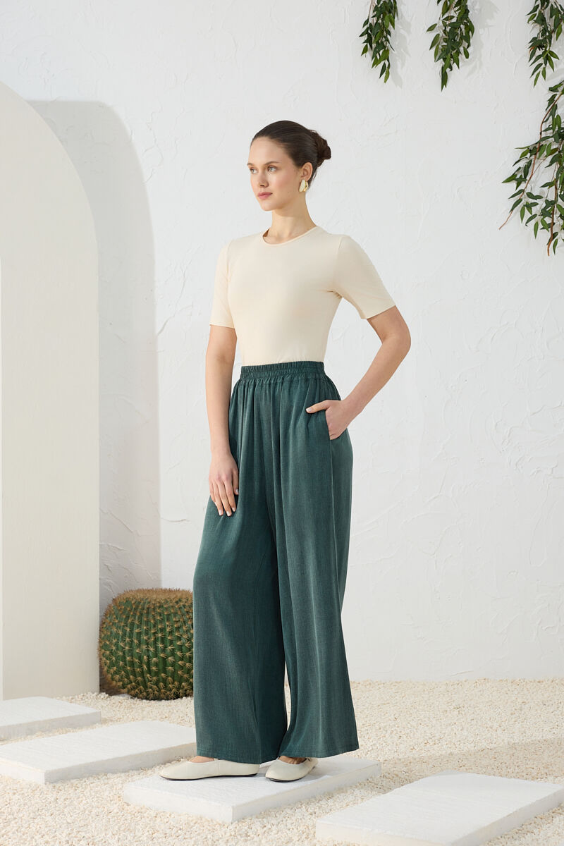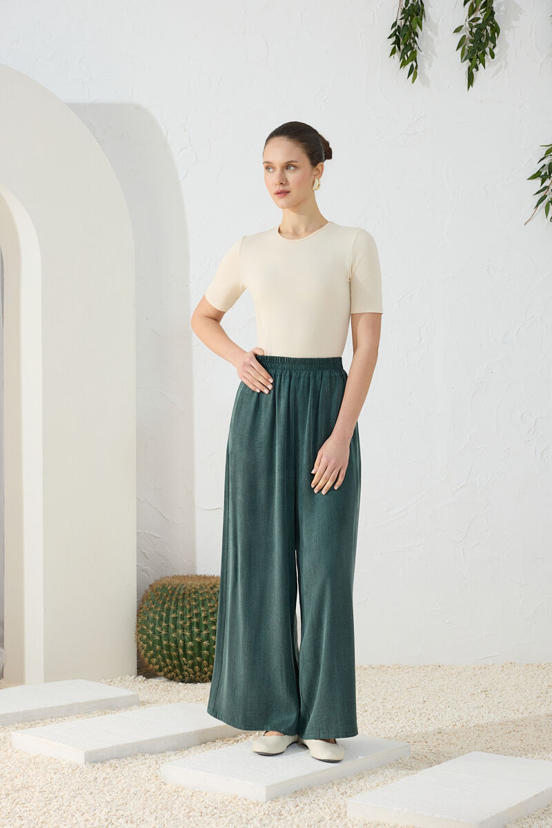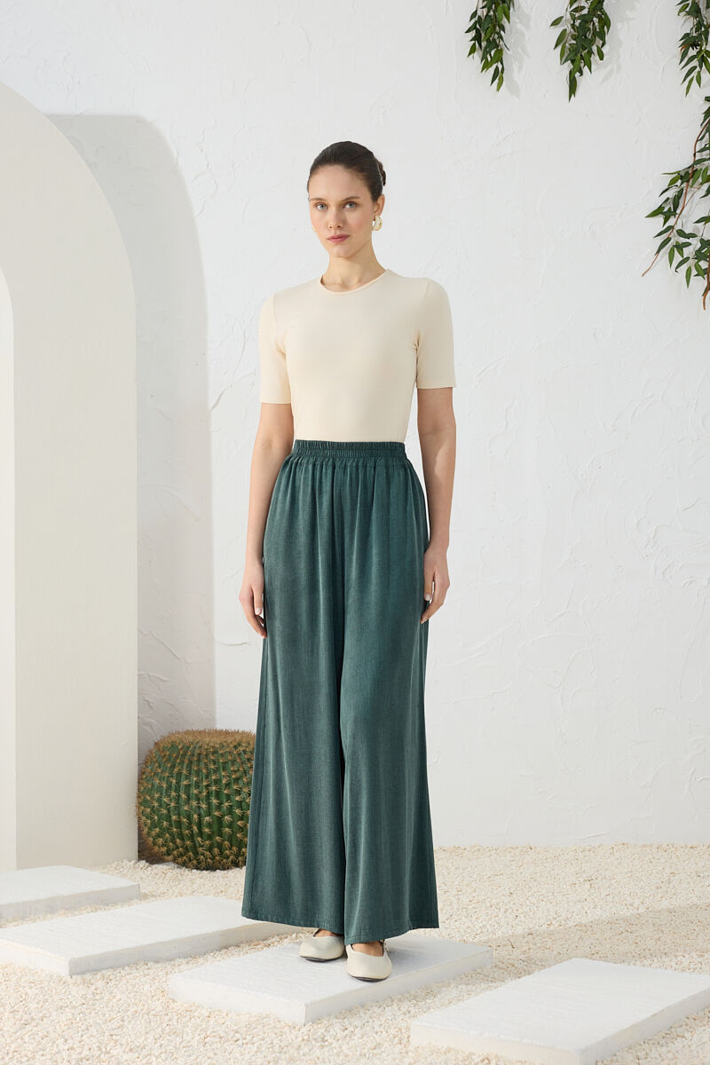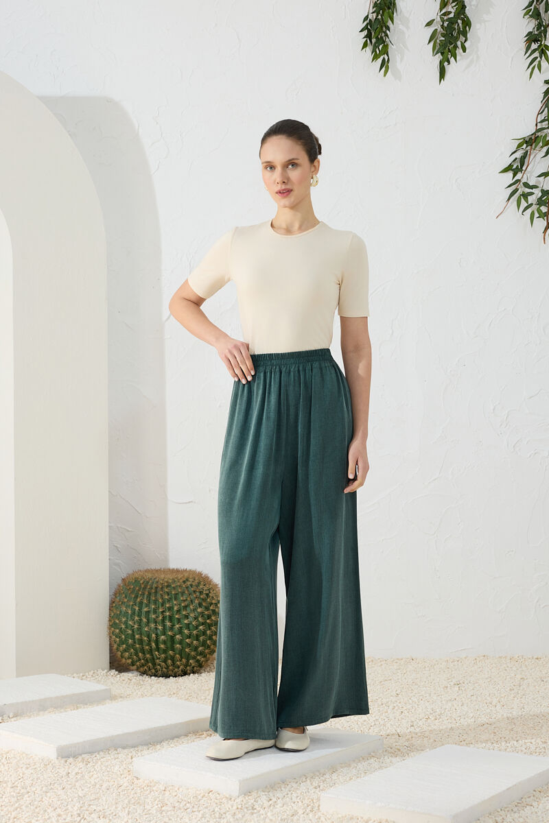 Yeşil Lastikli Pantolon Etek