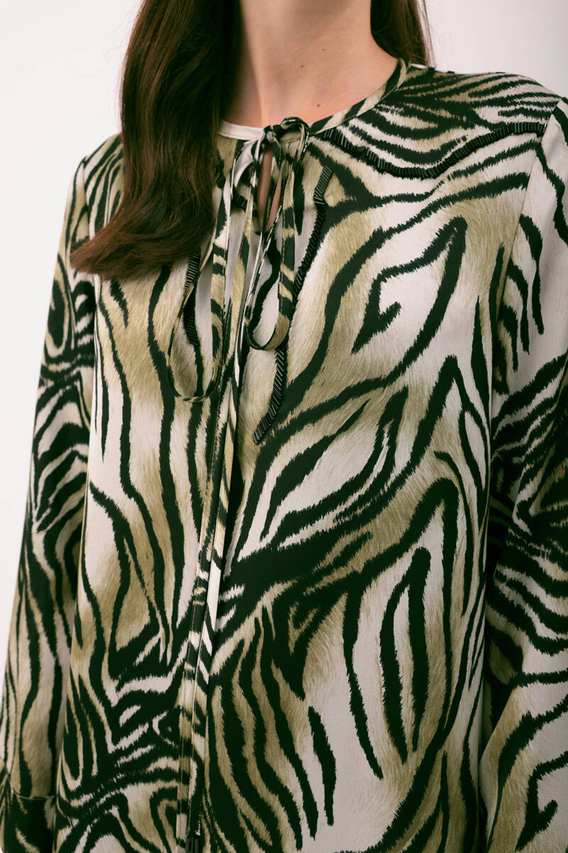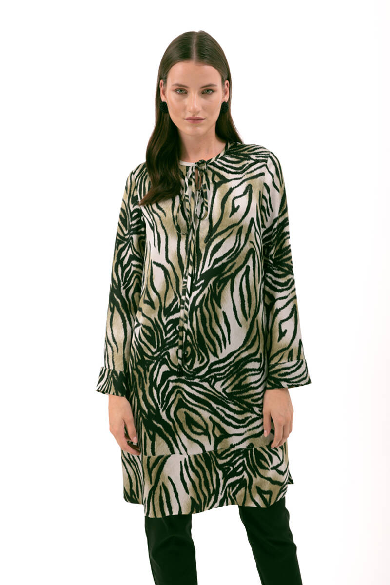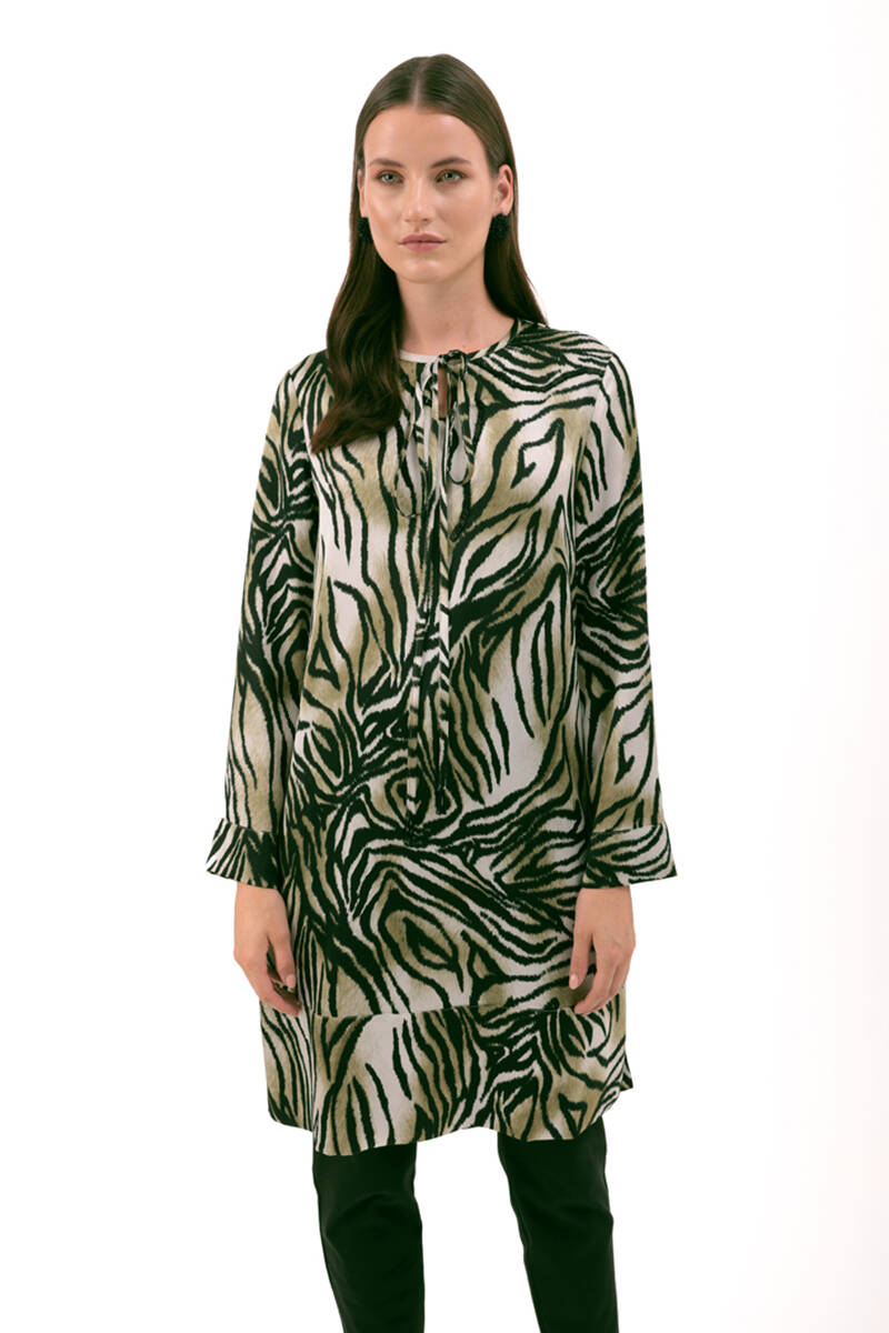 Hardal Zebra Desen İşlemeli Tunik