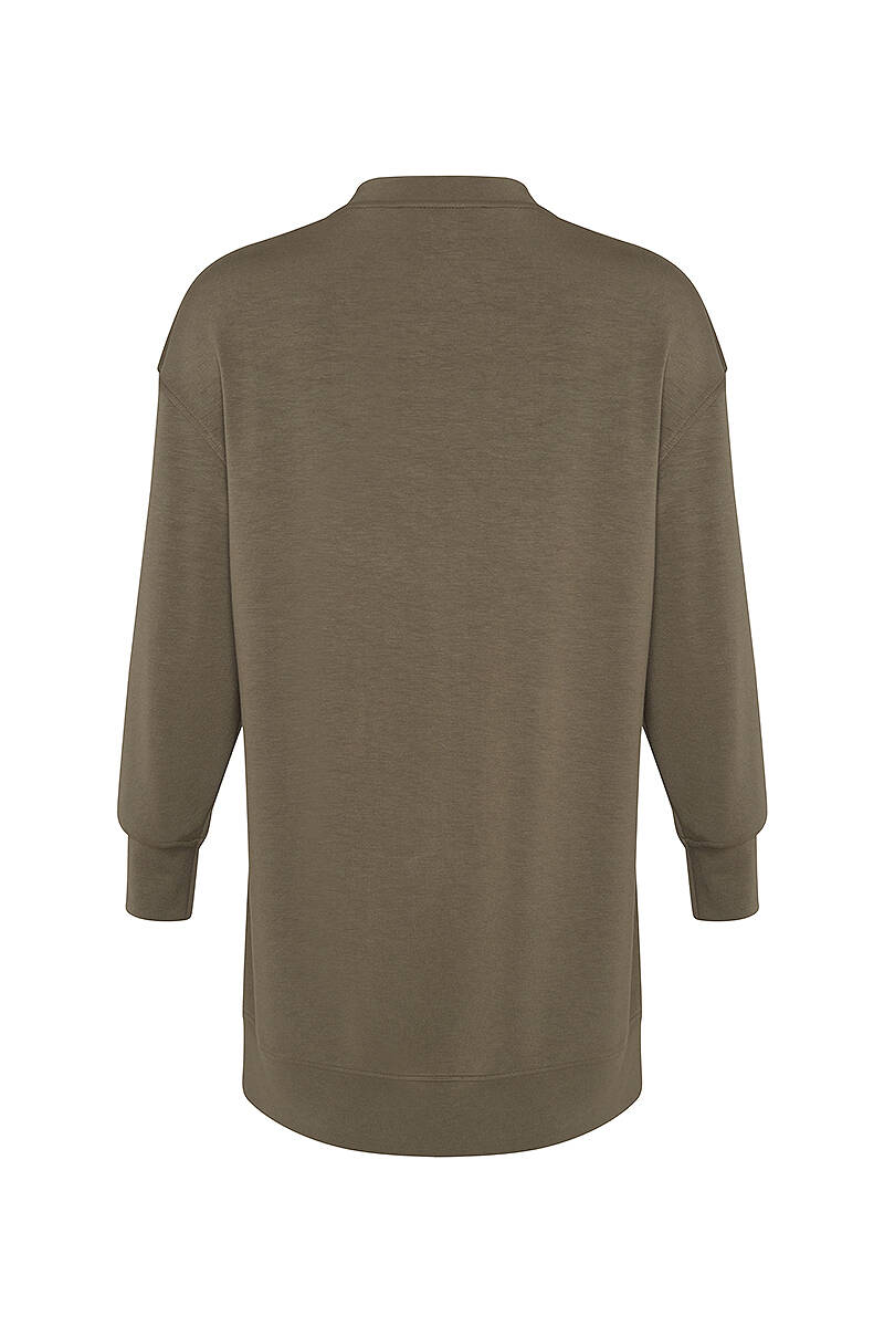 Yeşil Önü Çıt Çıt Detaylı Örme Sweatshirt