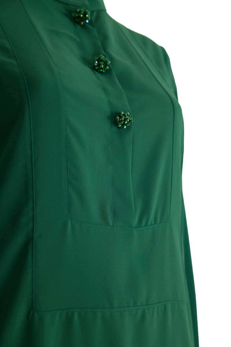 İndigo Dikiş Detaylı Hakim Yaka Tunik