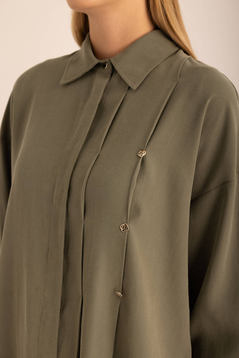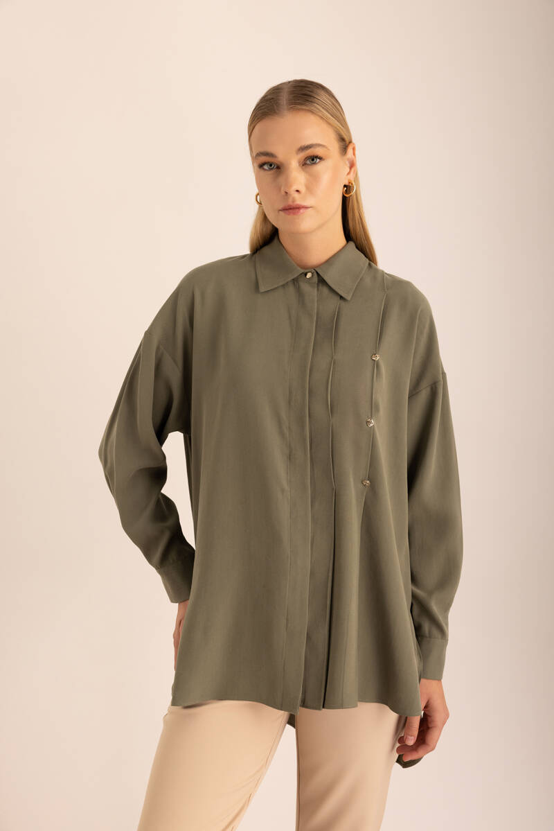 Yeşil Pileli Metal Logolu Bluz