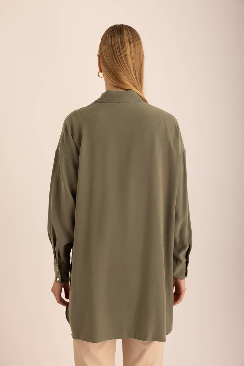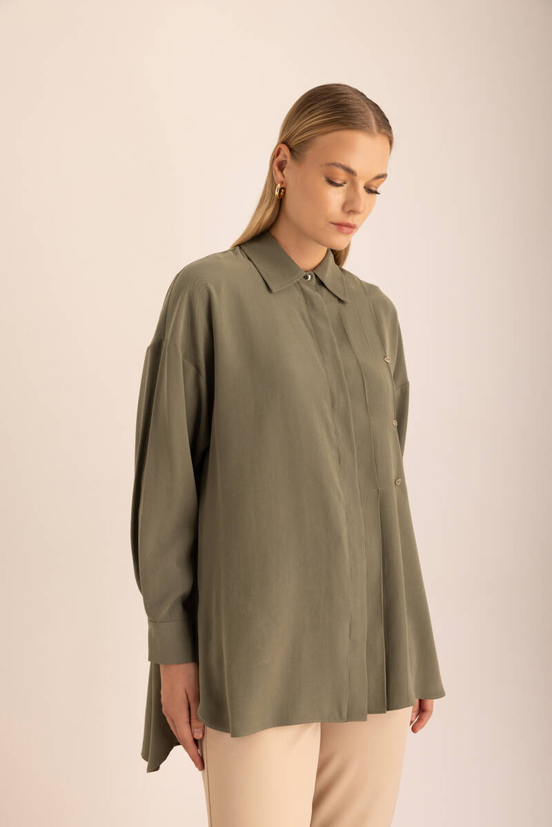 Yeşil Hakim Yaka Keten Gömlek