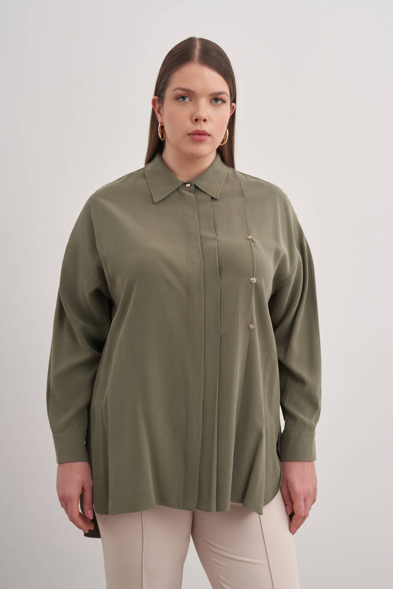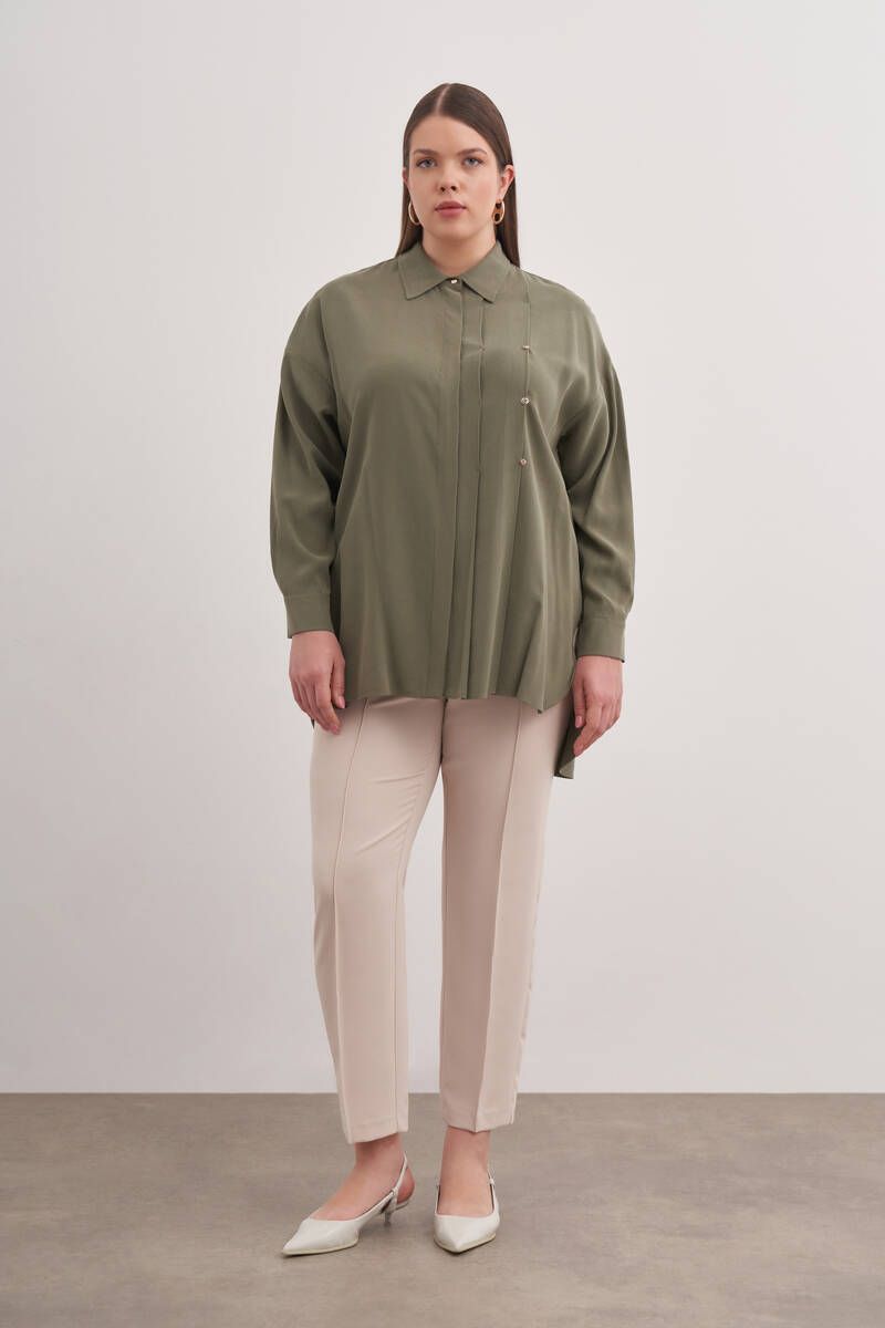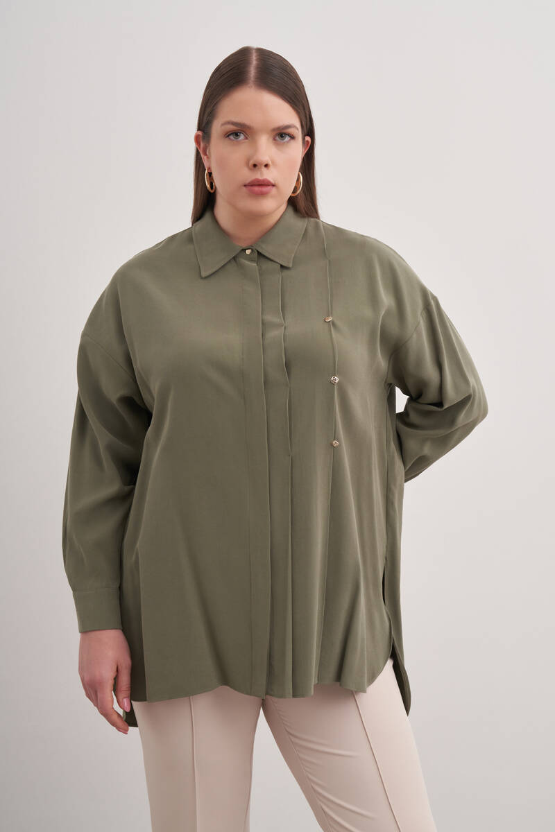 Yeşil Pileli Metal Logolu Bluz