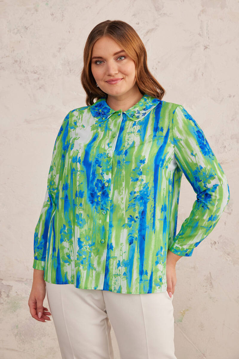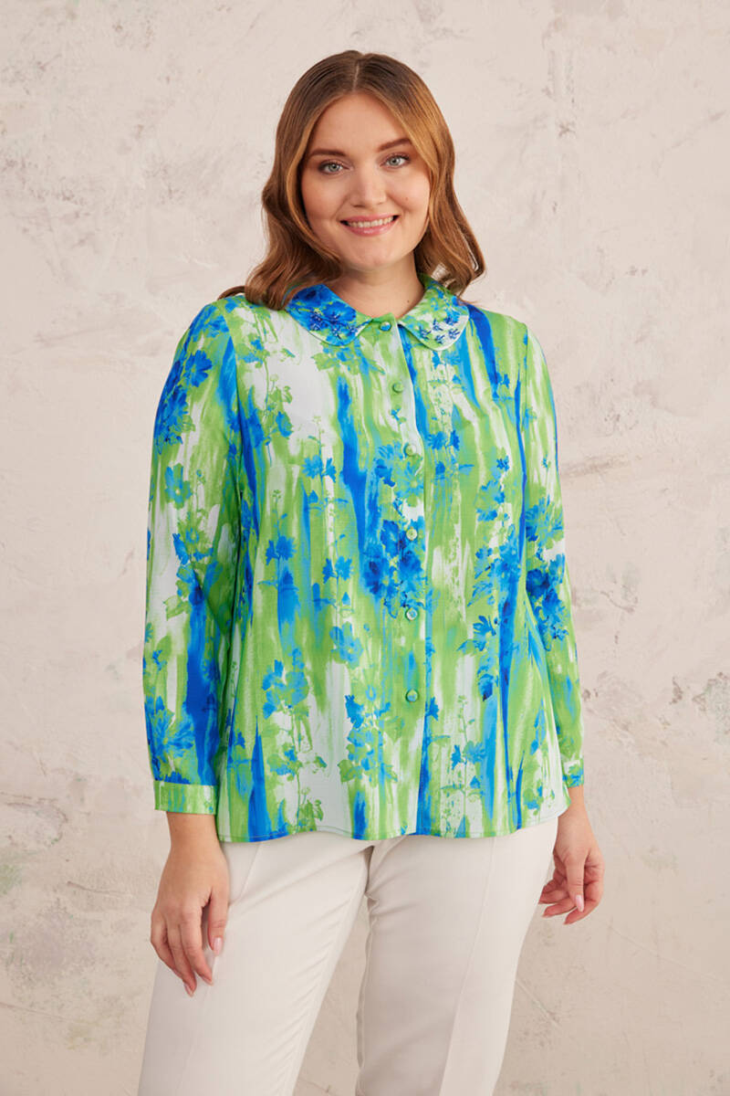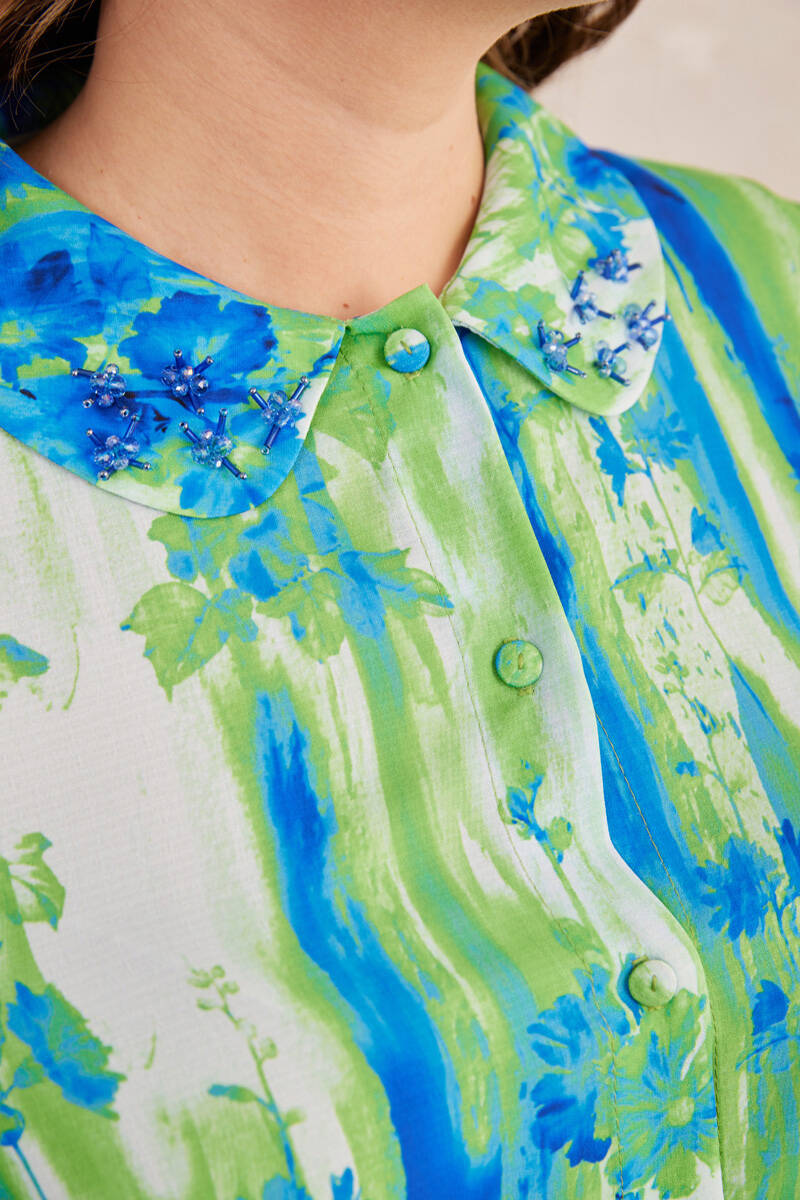Siyah Yakası İşlemeli Bluz