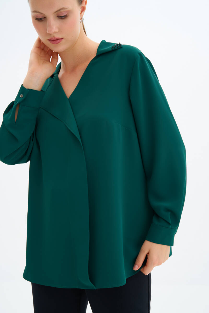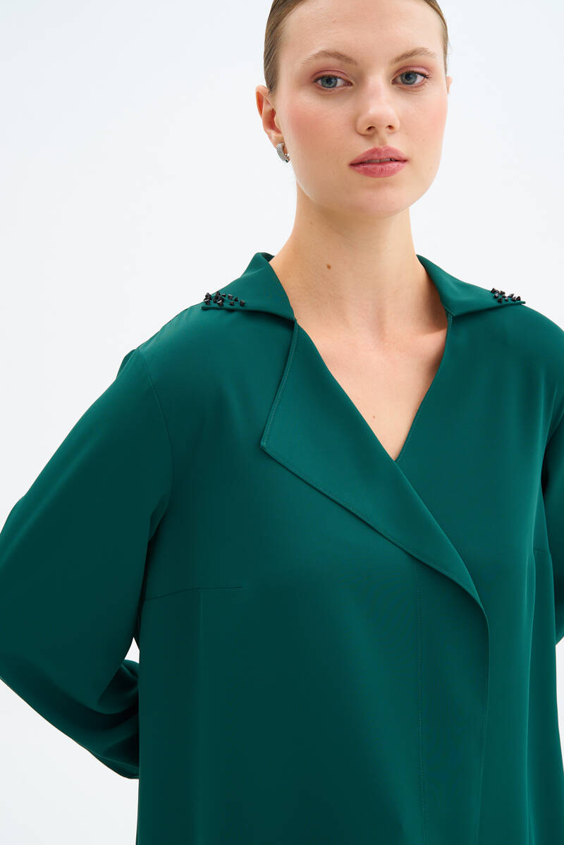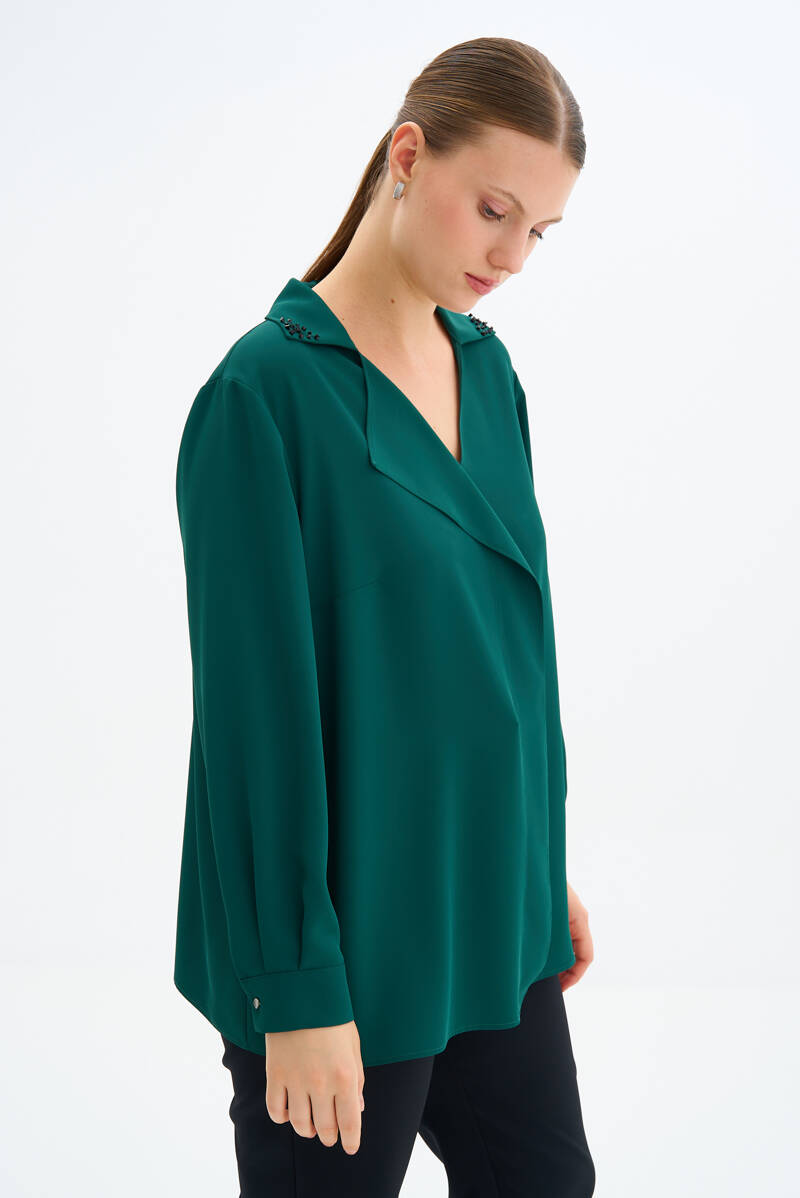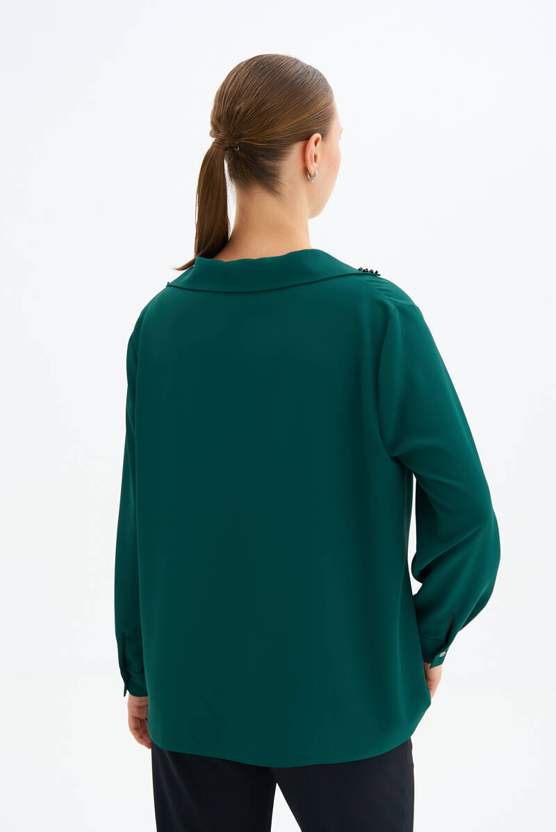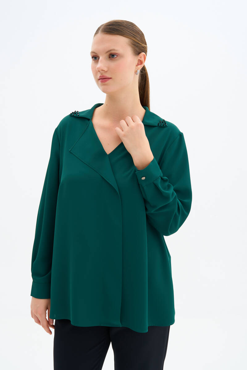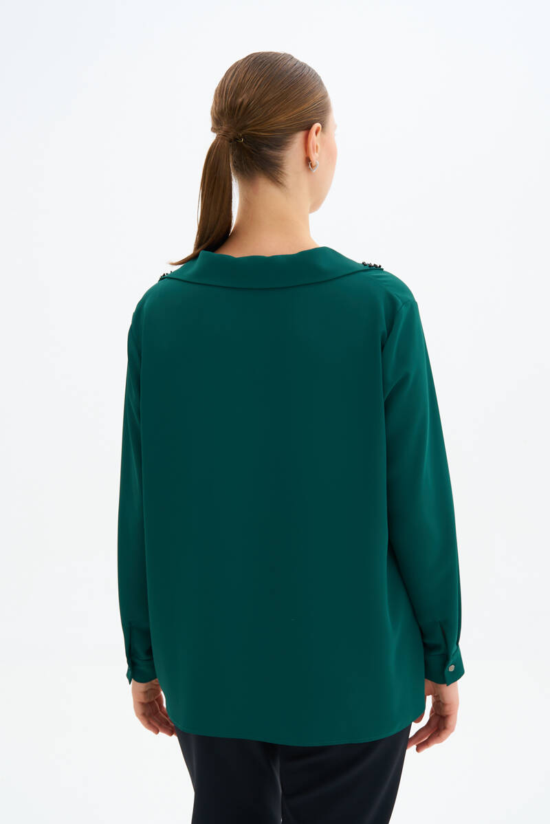 Antrasit Yaka İşlemeli Çizgili Bluz