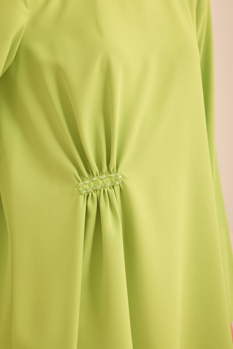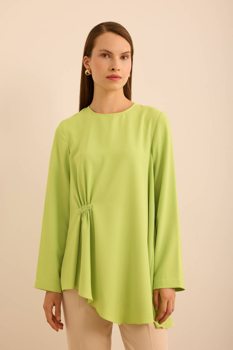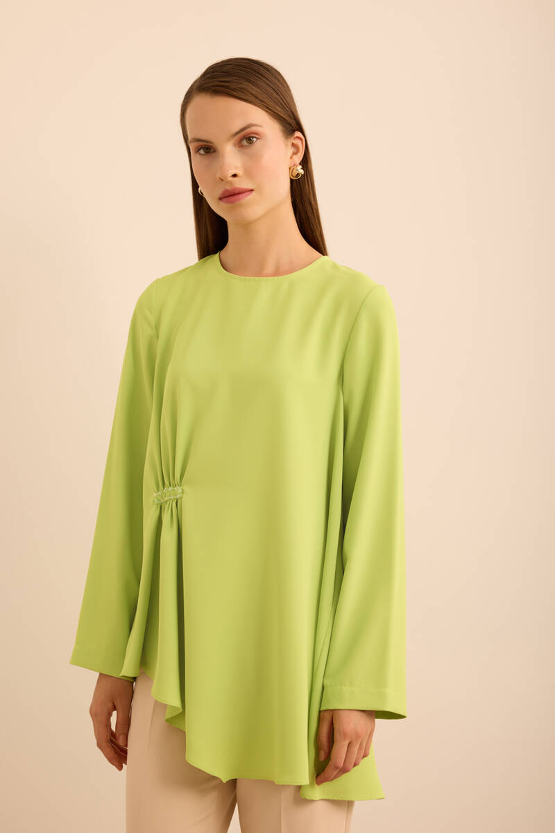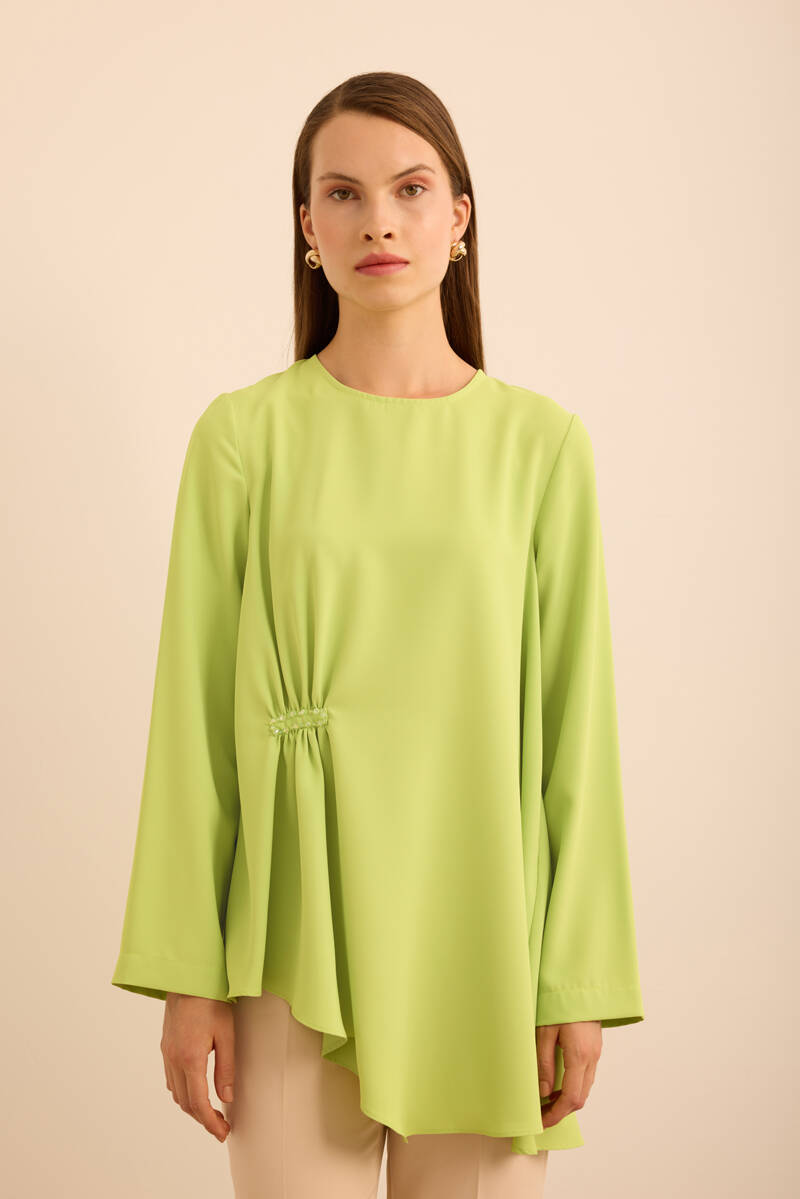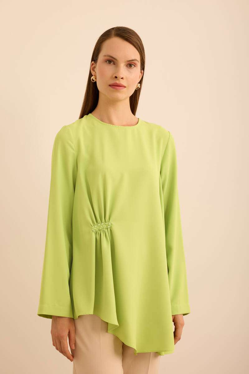 Ön Göğüs Kısmı Pile ve Parça Detaylı Bluz