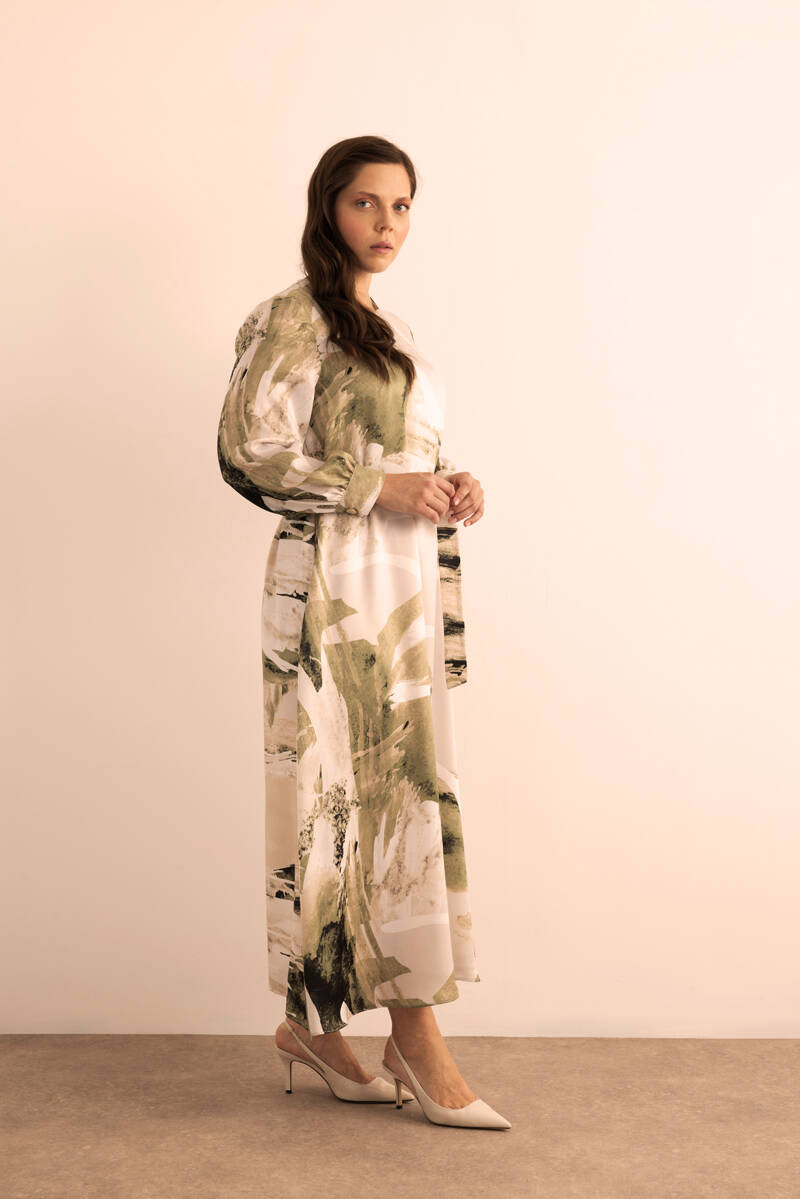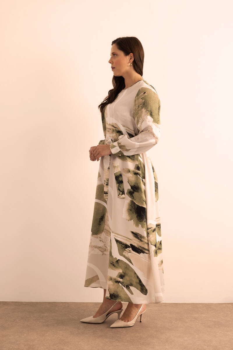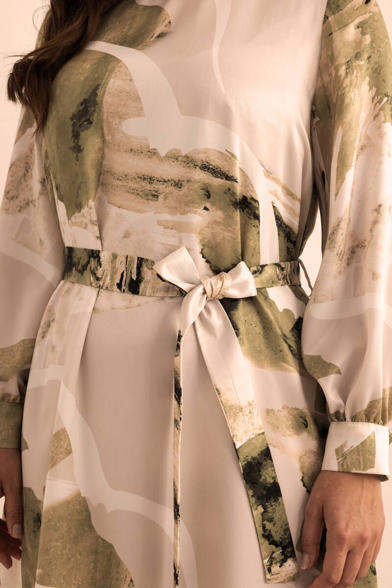 Turkuaz Geometrik Desenli Gömlek Elbise