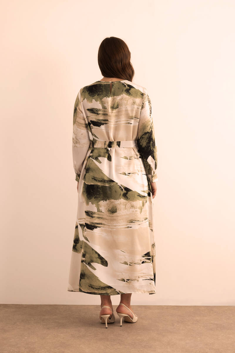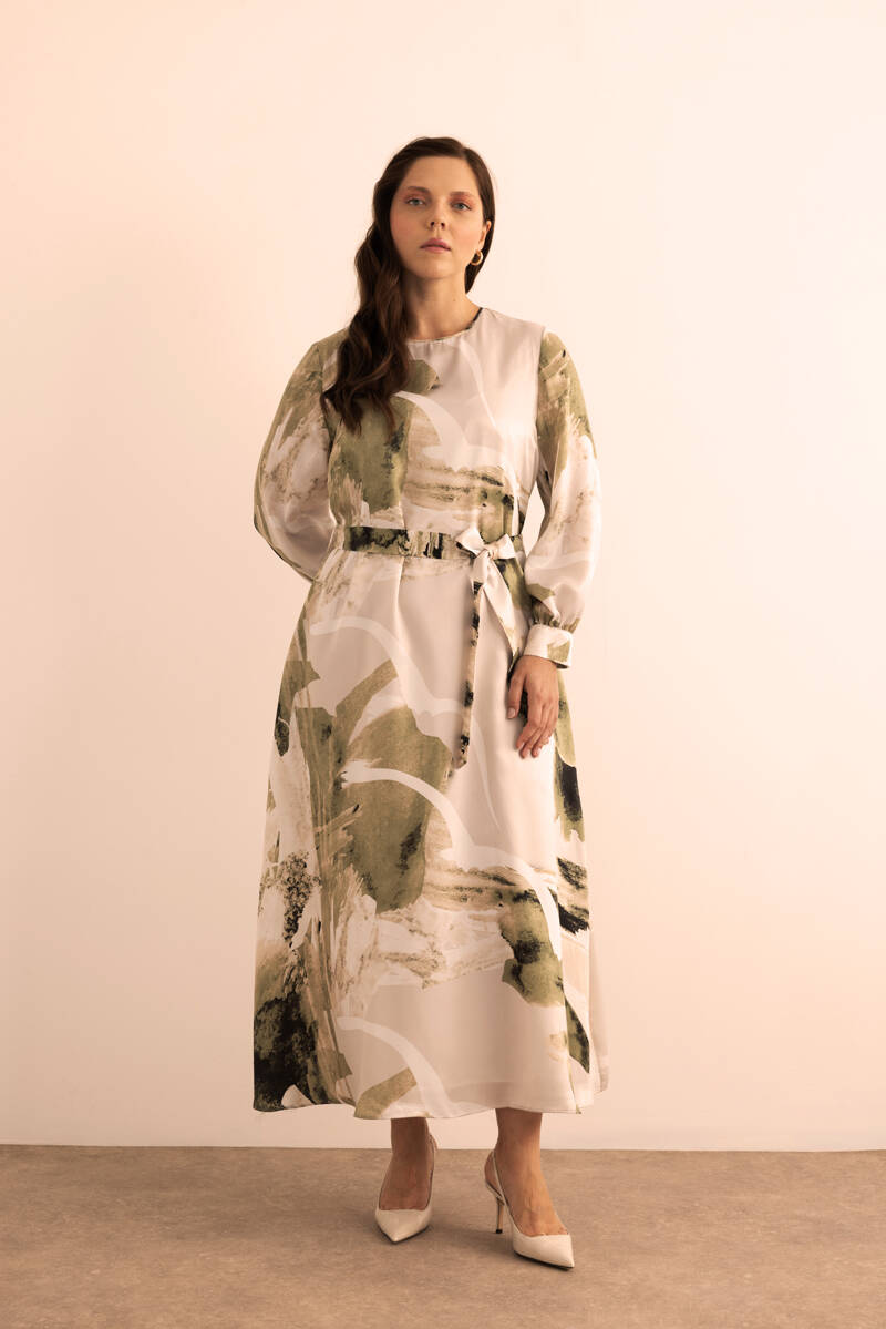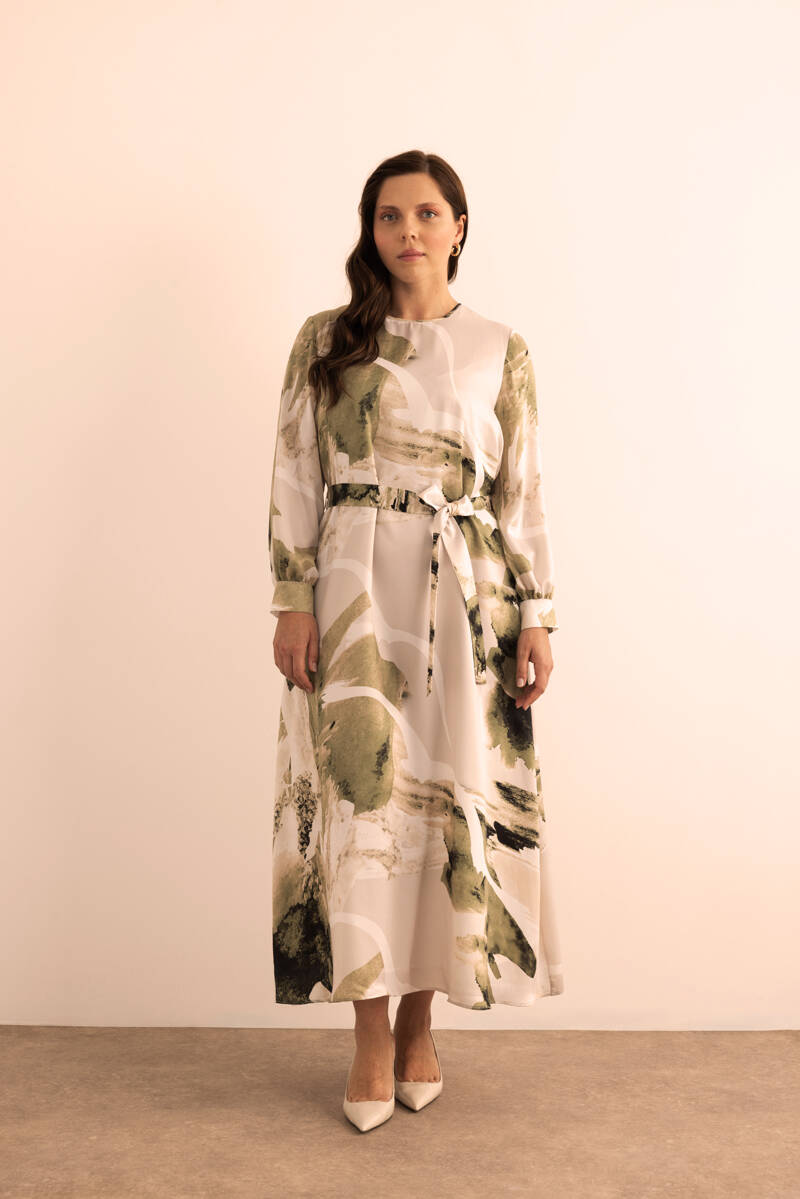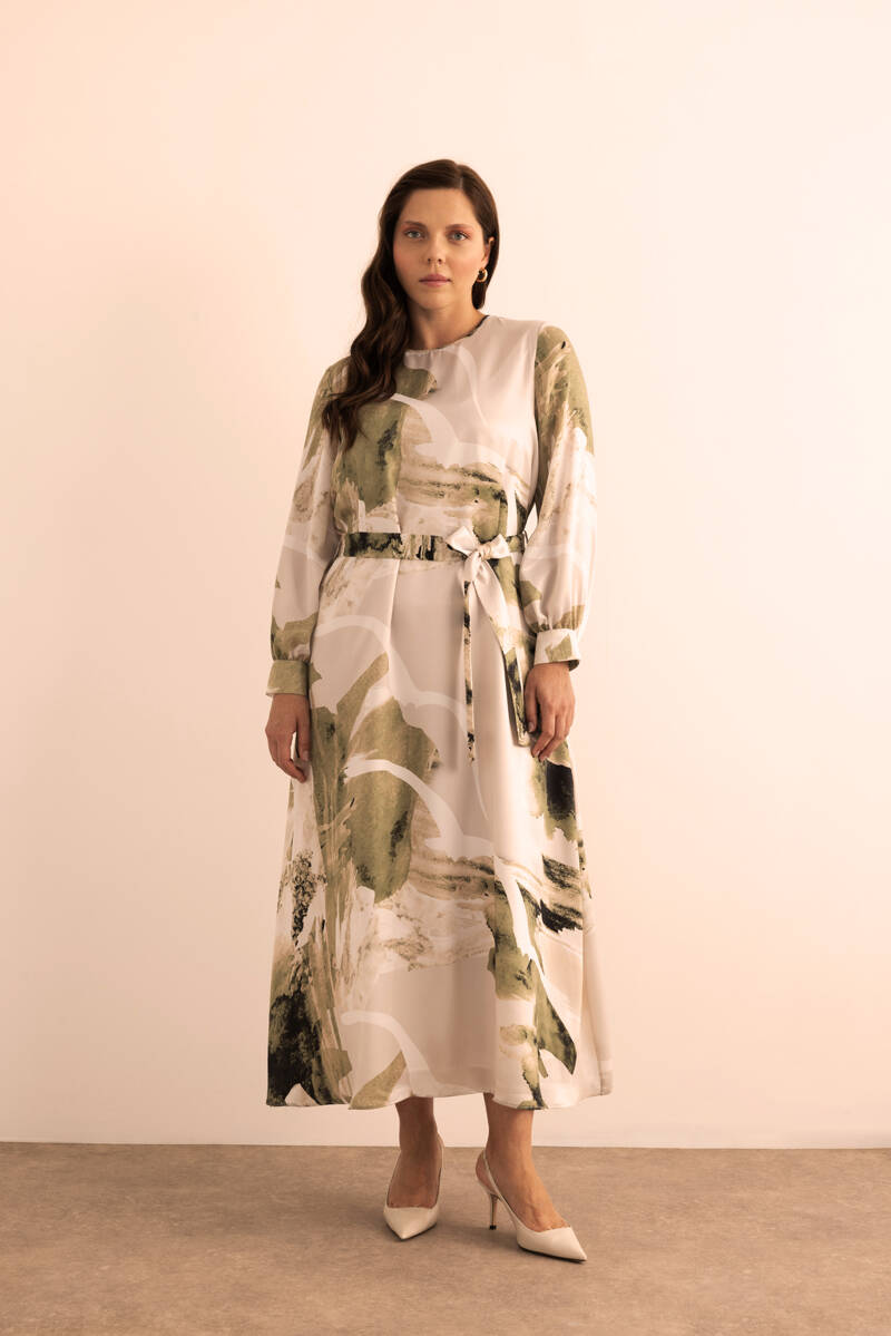 Turkuaz Geometrik Desenli Gömlek Elbise