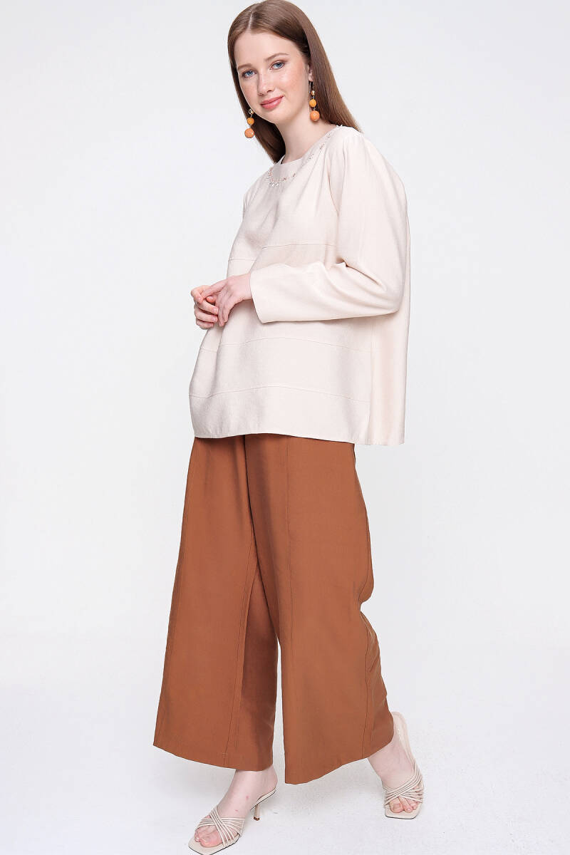 Kahverengi Basic Bluz