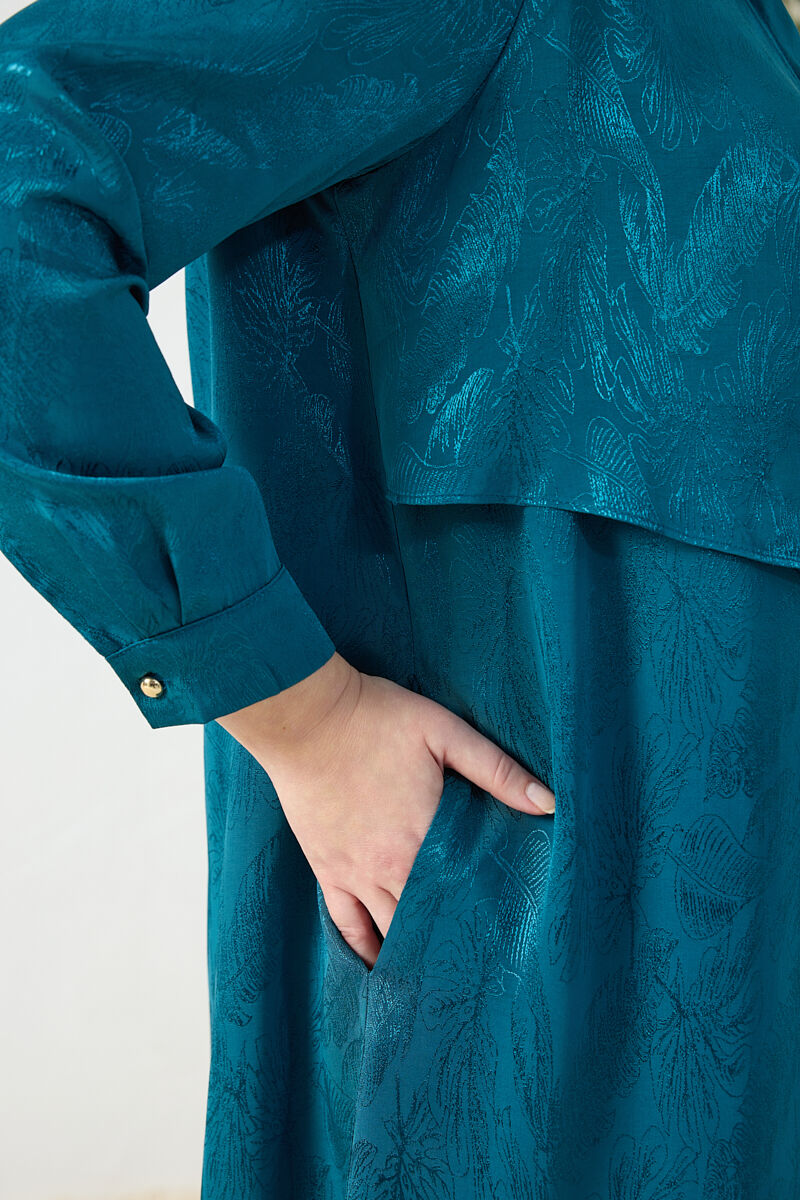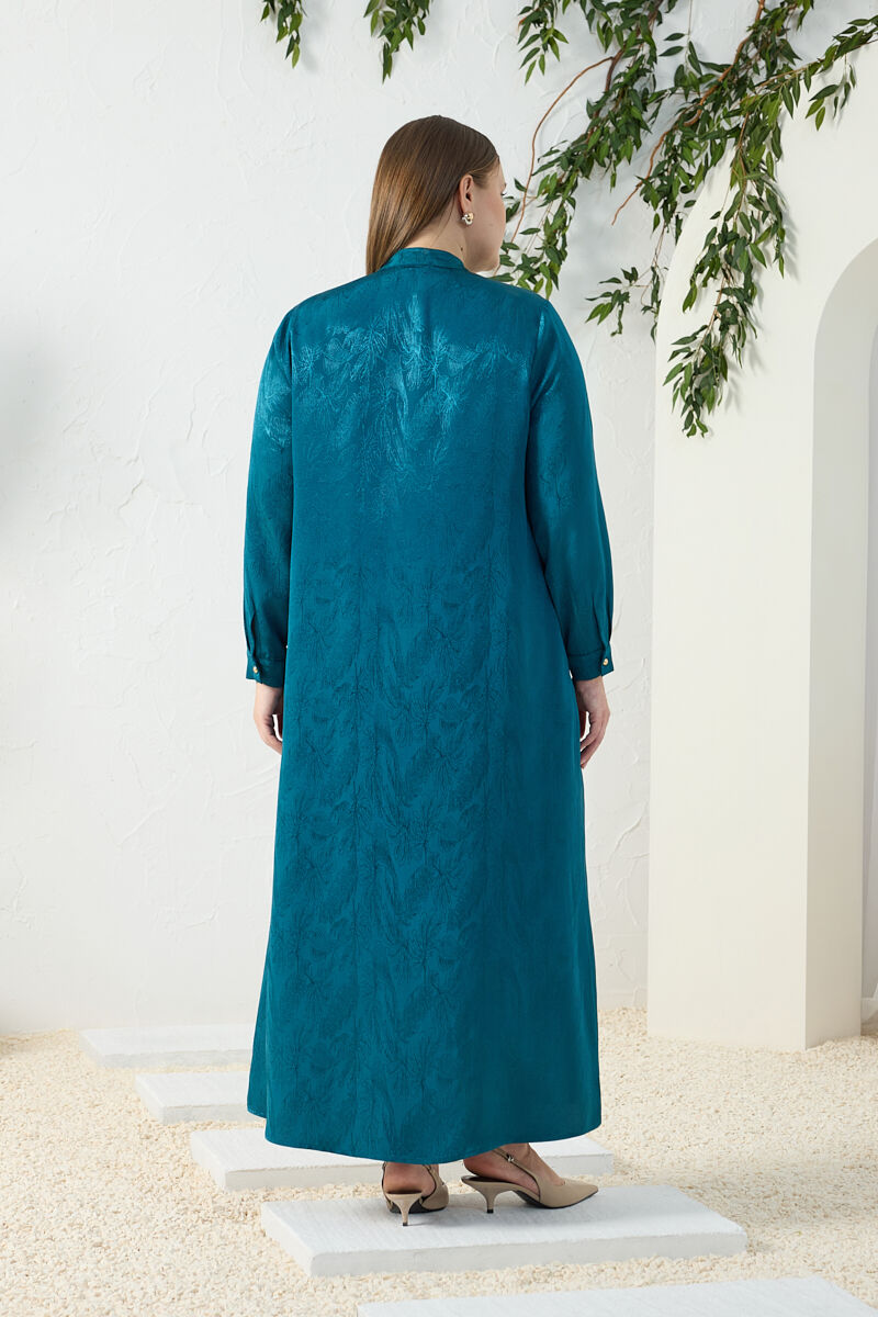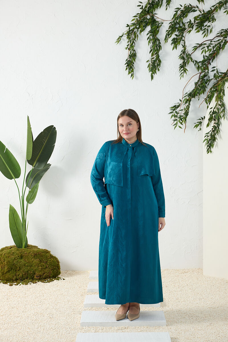 İndigo Fermuarlı Keten Ferace